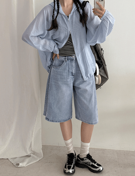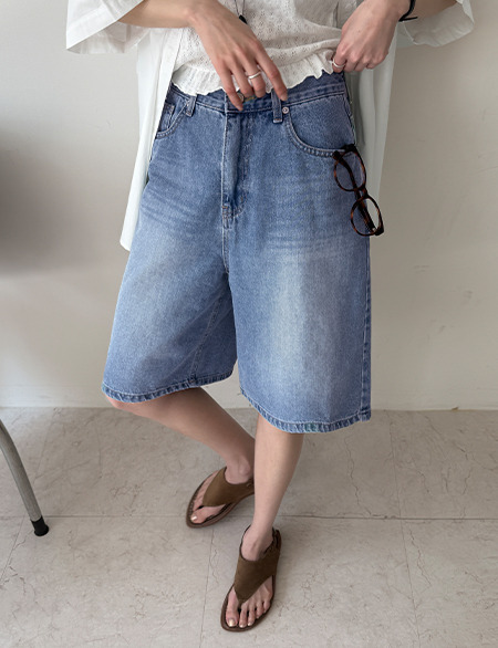[3XL까지] 사이드패널 버뮤다 牛仔 短褲 87360