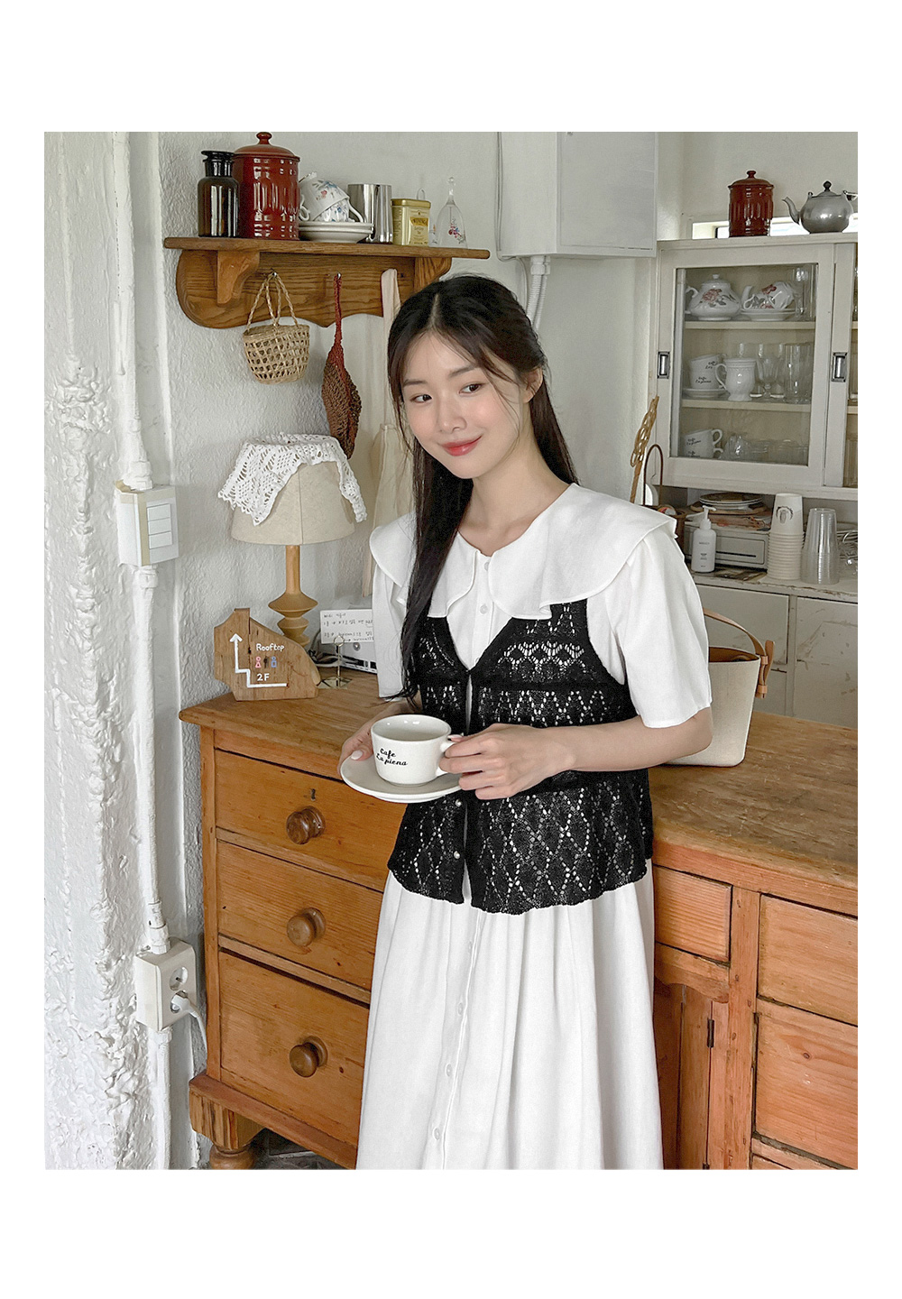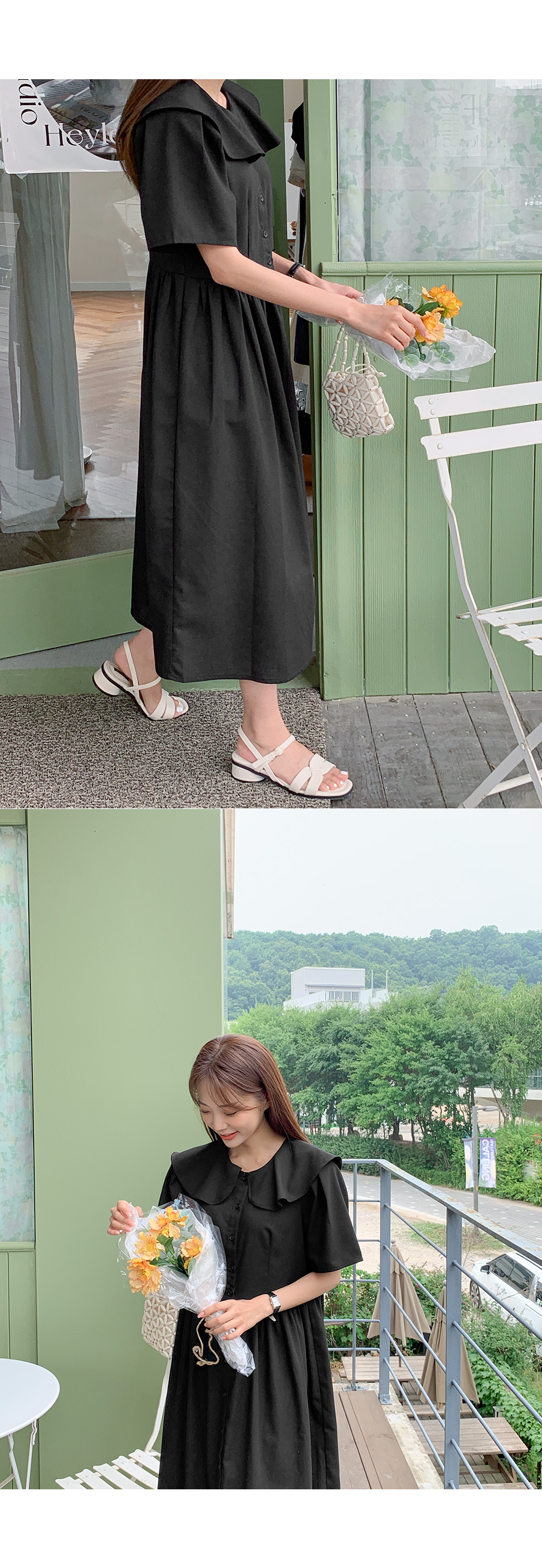 걸리시하면서 사랑스러운 무드 물씬 느껴지는 빅카라 롱 원피스