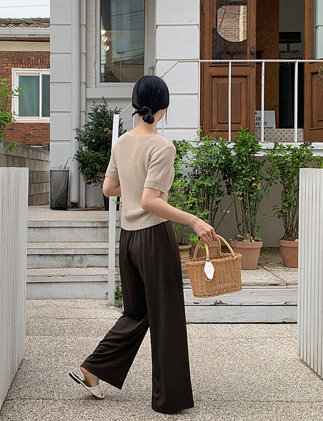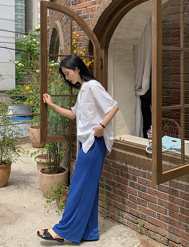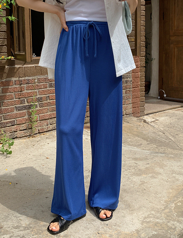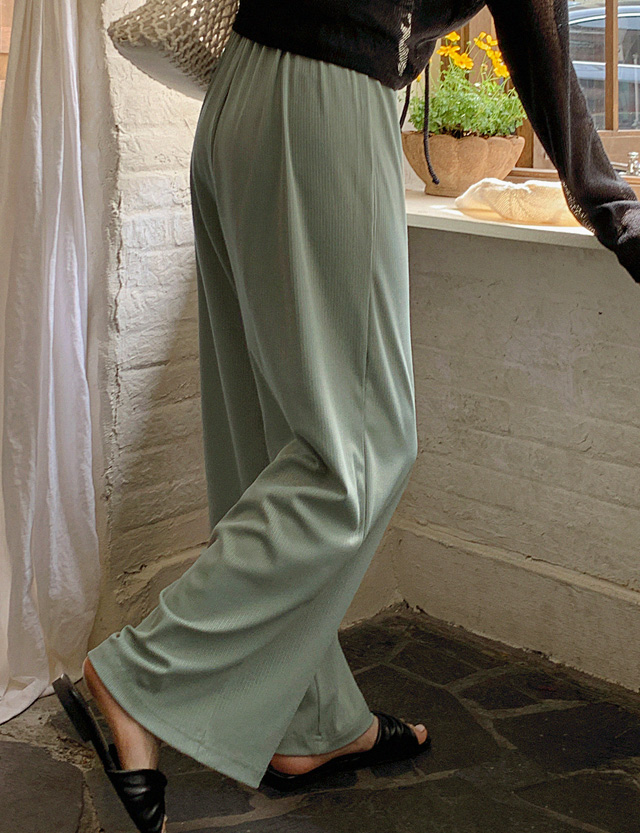 [特價 PROJECT] 鬆緊腰涼爽羅紋寬褲 75356