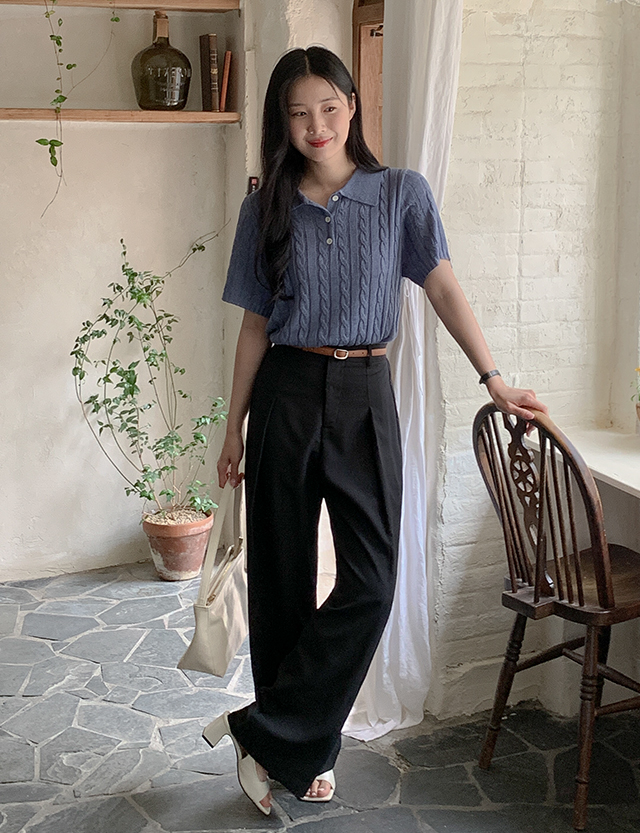 鬆緊打褶休閒寬褲 75352