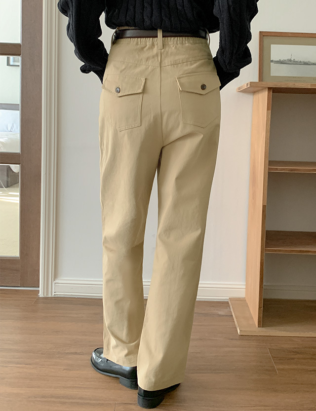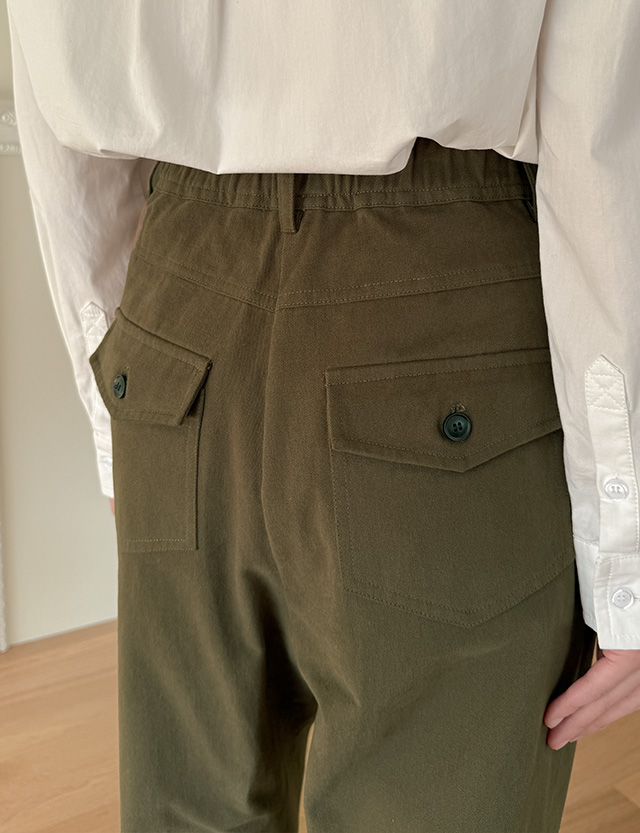 ✔ 뒤 포켓에 플랩과 단추 디테일로