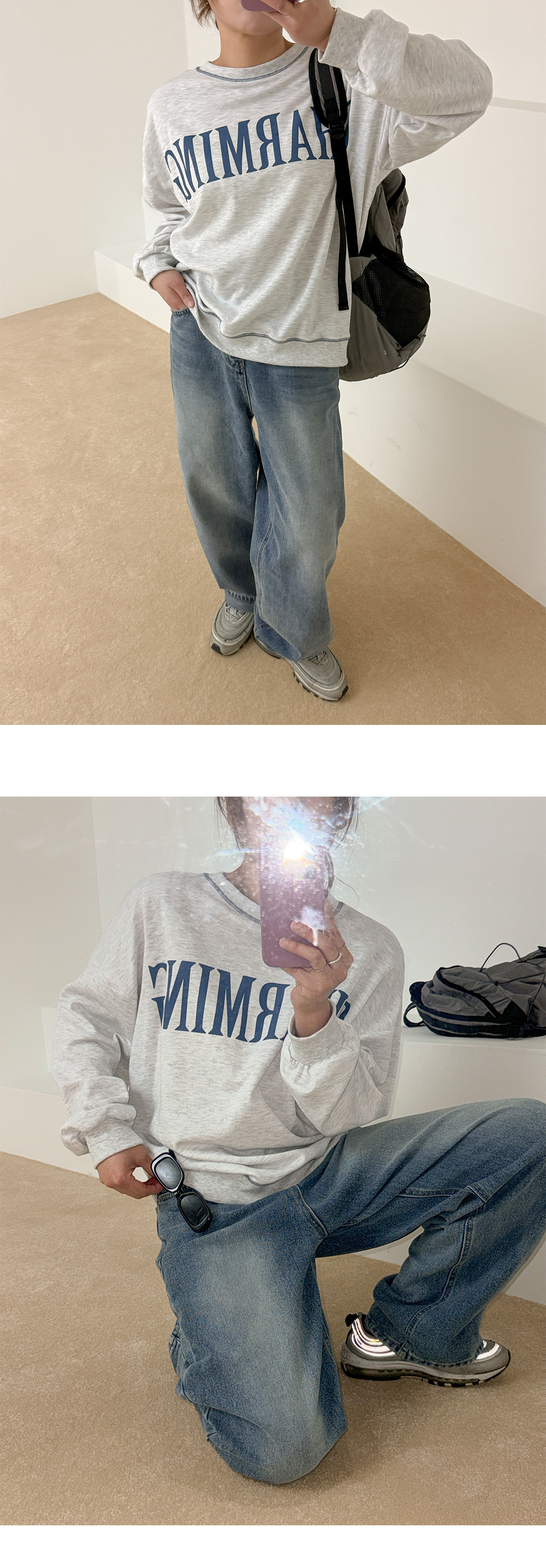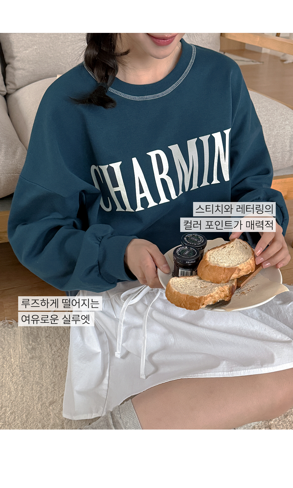 여유 있게 떨어지는 루즈한 실루엣 덕분에
