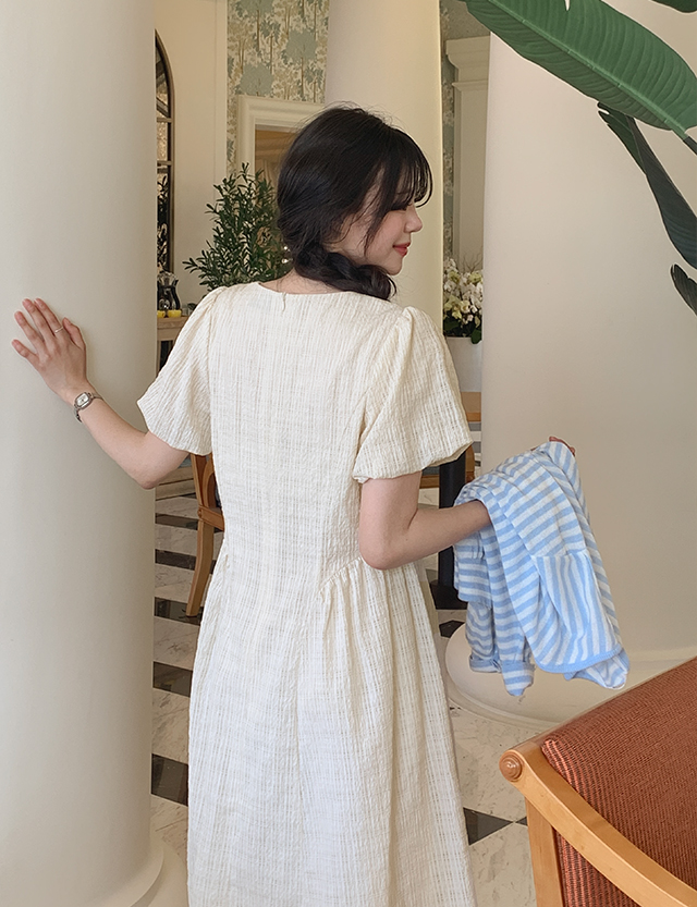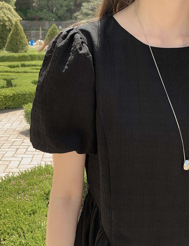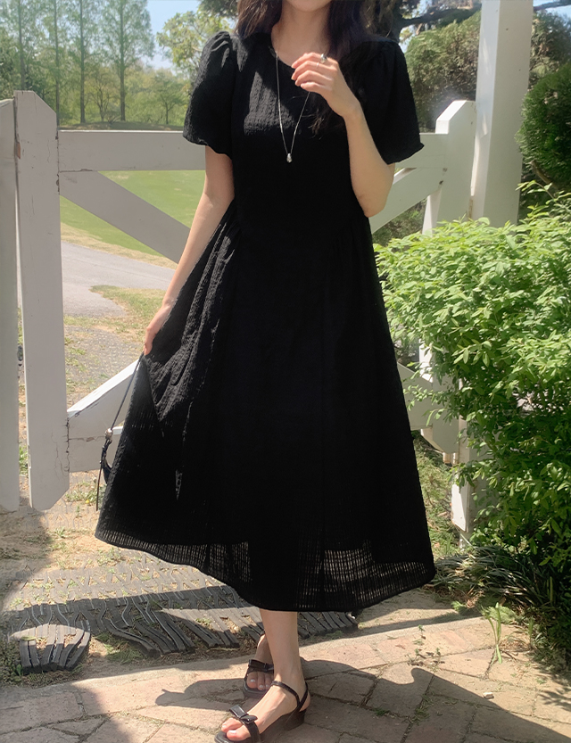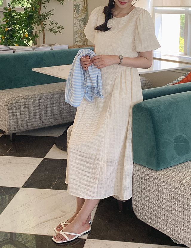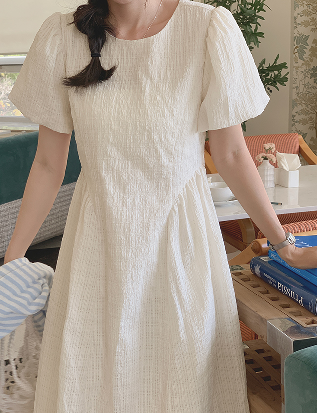 잔잔한 체크 짜임과 퍼프소매로 러블리한 원피스
