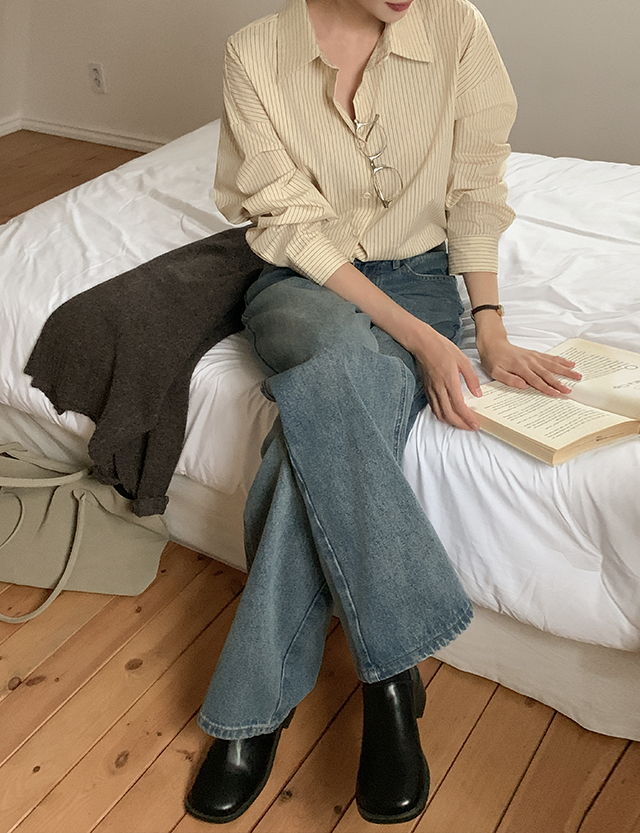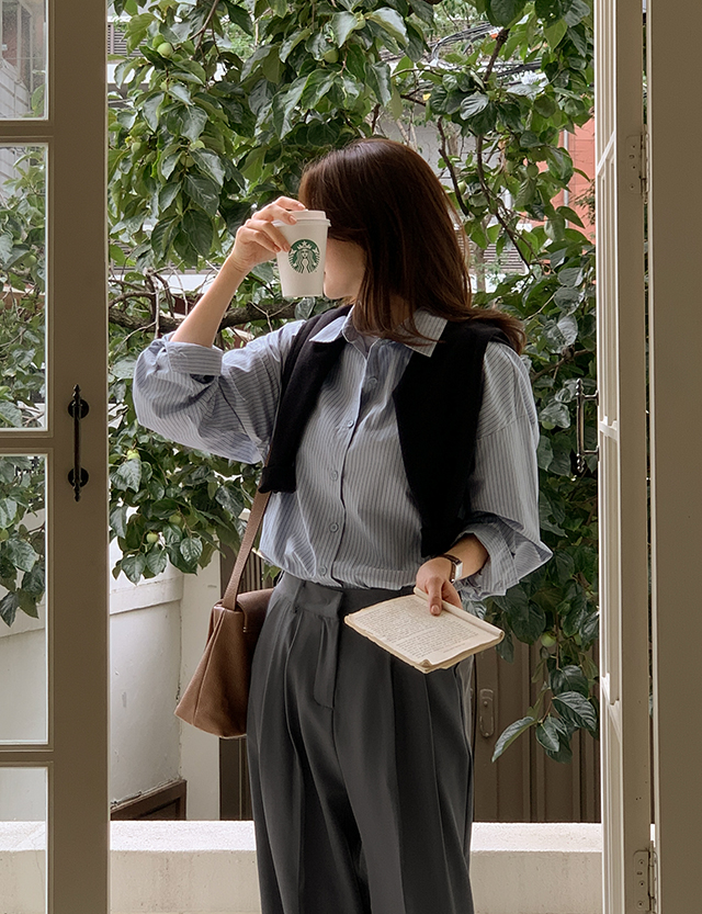 [3가지기장] 노수선 옆밴딩 打摺 寬 休閒長褲 83567