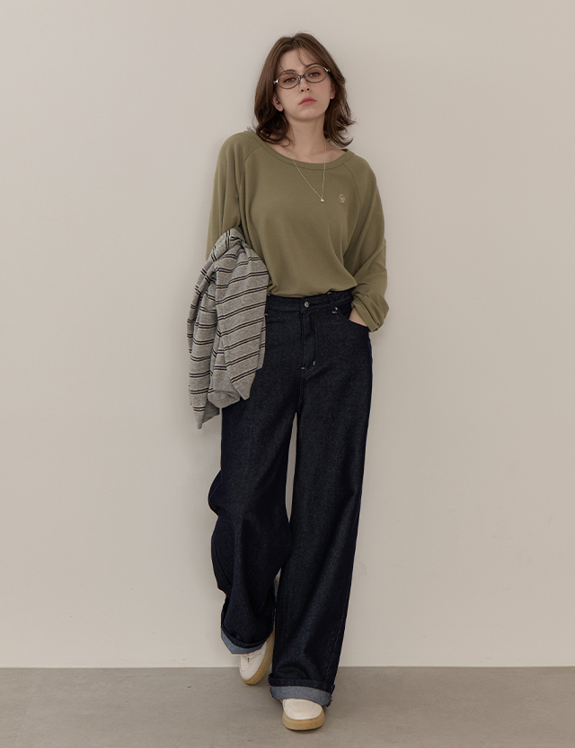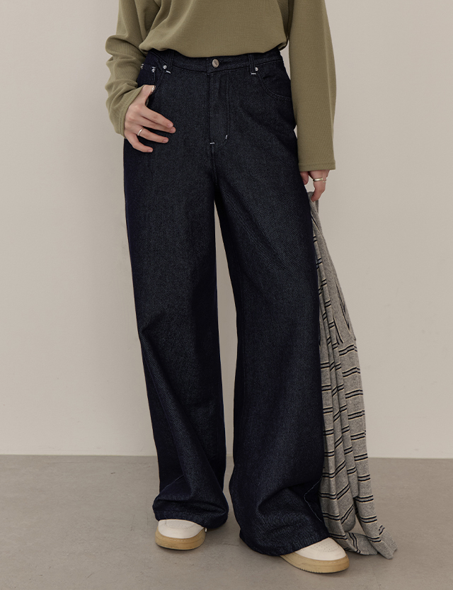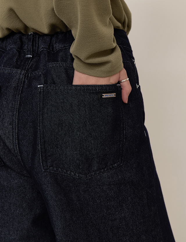 配色 바텍 논페이드 鬆緊腰 寬 牛仔 褲 83766