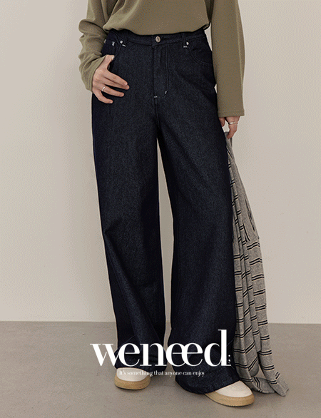 • 配色 바텍 논페이드 鬆緊腰 寬 牛仔 褲 83766