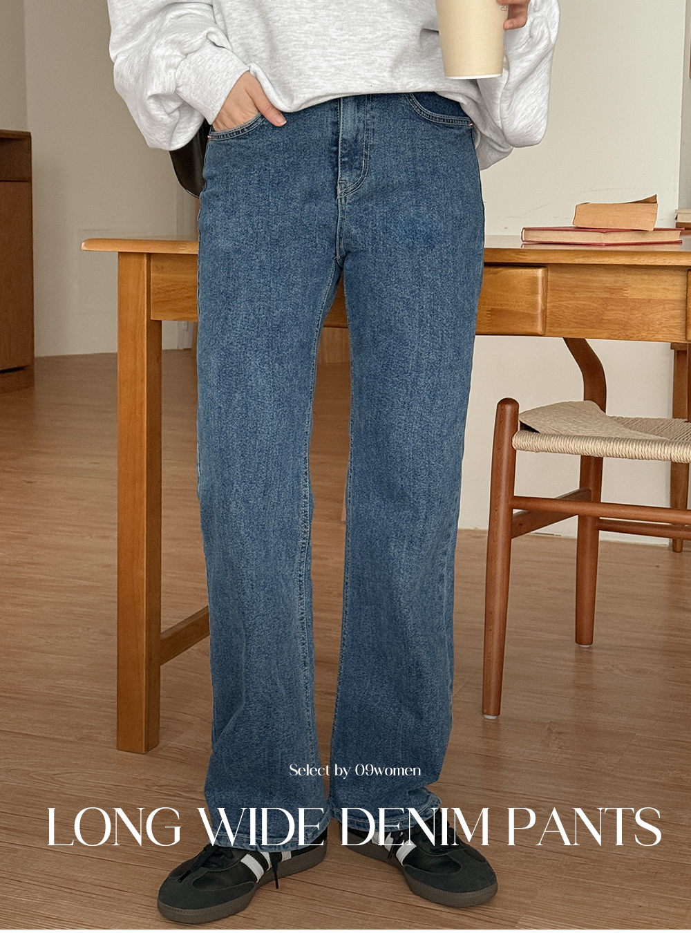 롱 와이드 데님 팬츠입니다.