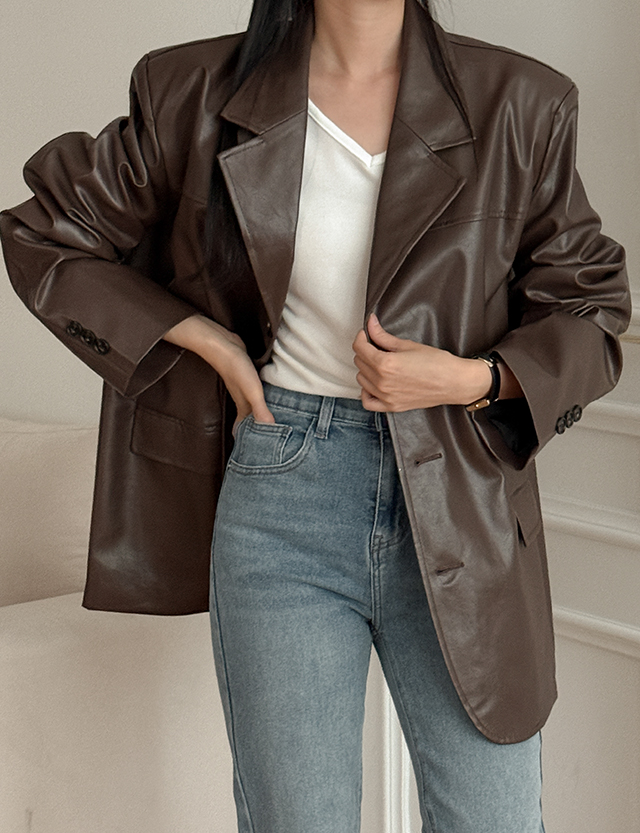 부담 없이 레이어드 가능한 레더 자켓이에요.