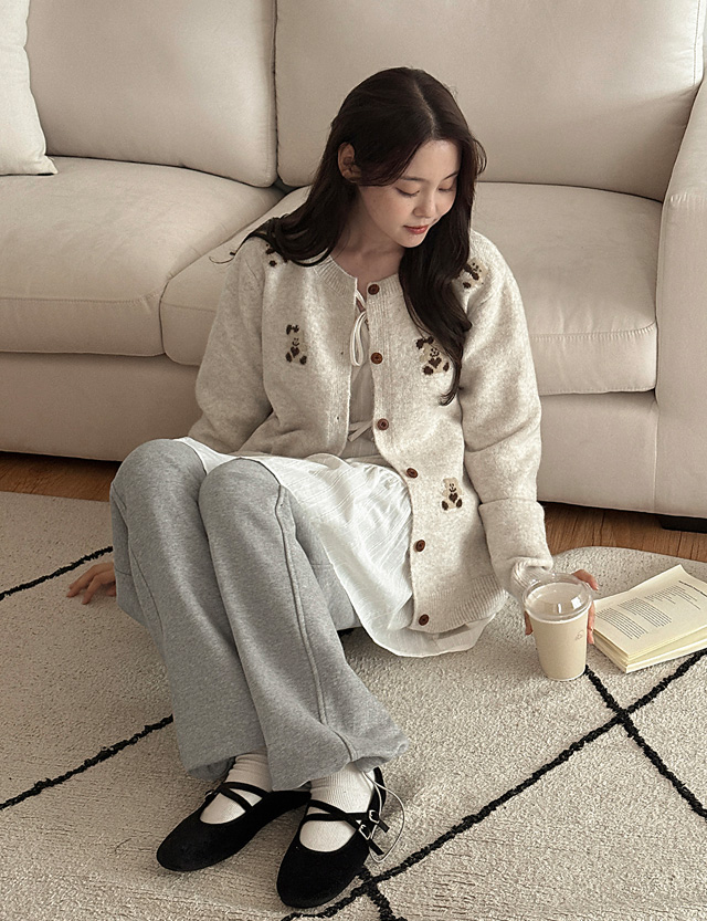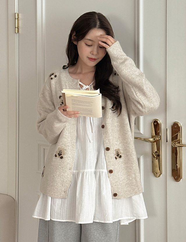샤인르 곰돌이 圓領 針織 開襟外套 84108