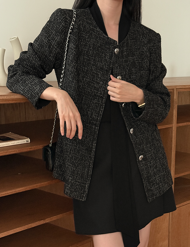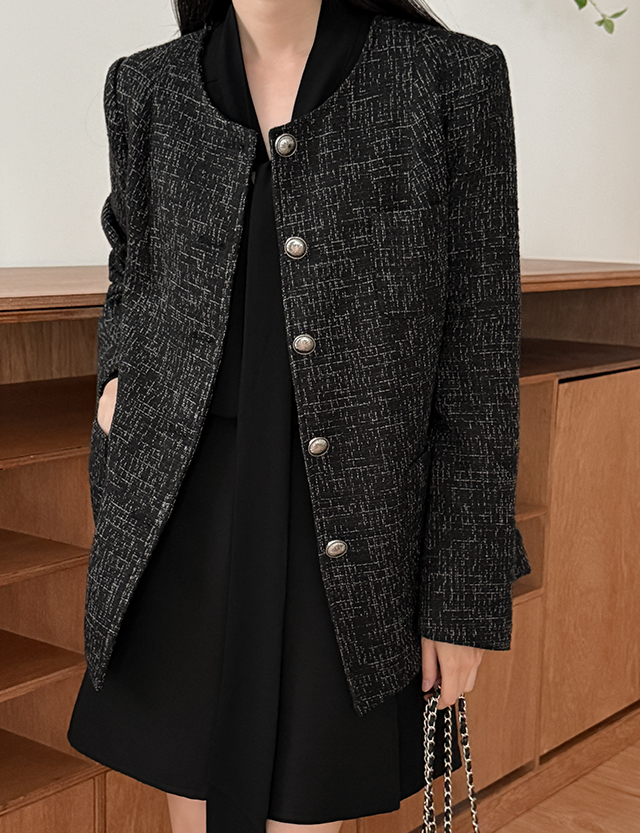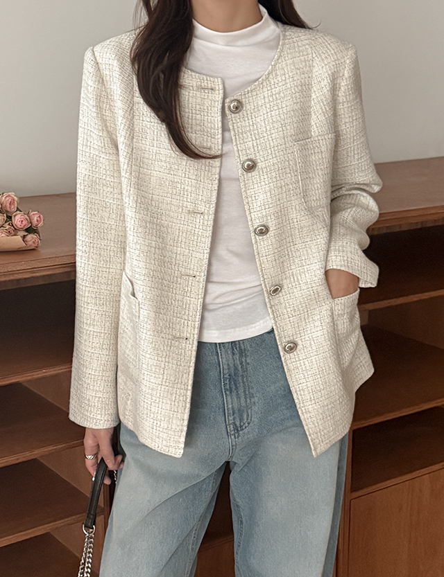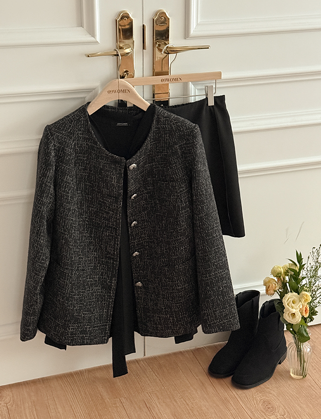 포멀하거나 페미닌한 무드로 착용하기 좋은 트위드 자켓