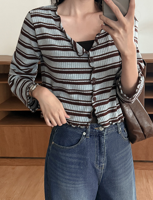 플러티 條紋 羅紋 短款 開襟外套 84059