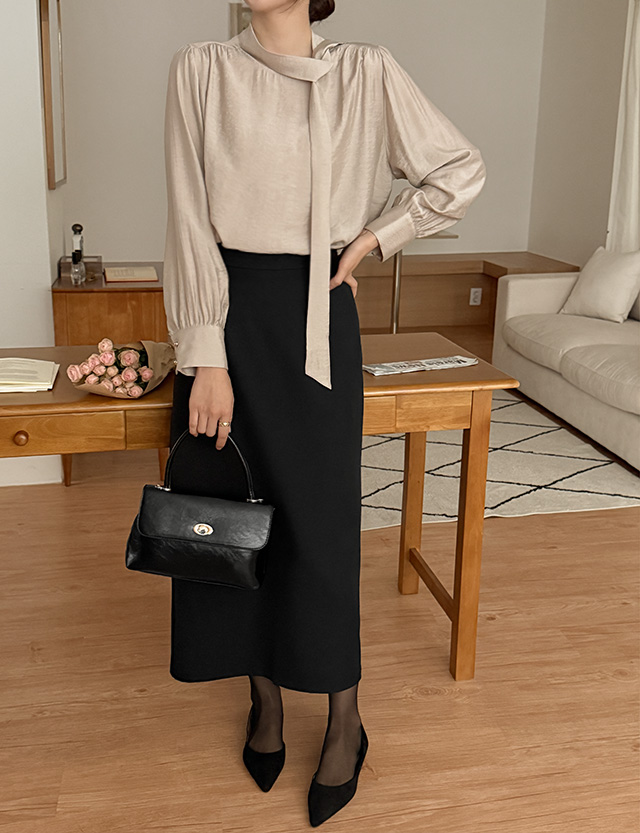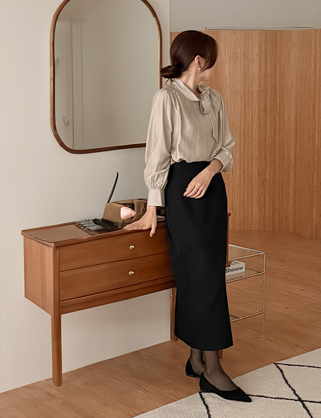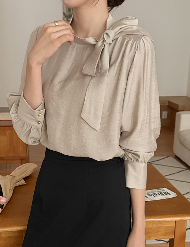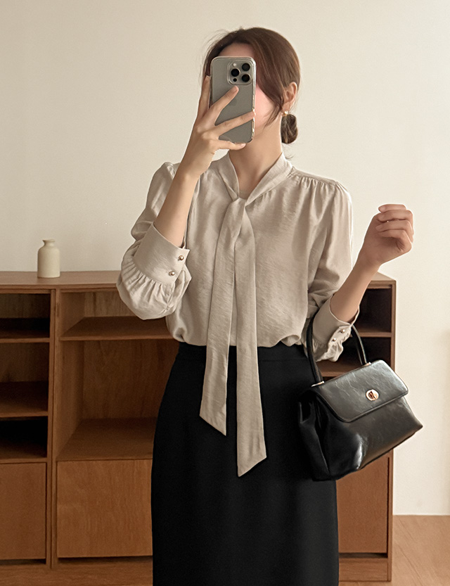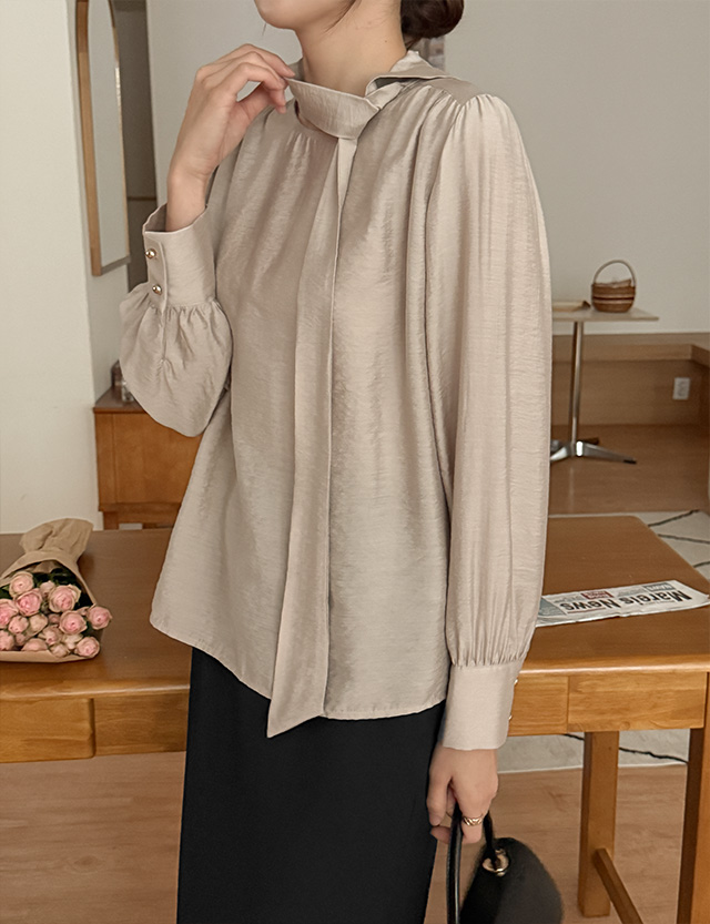 여리여리한 무드를 살린 타이 블라우스