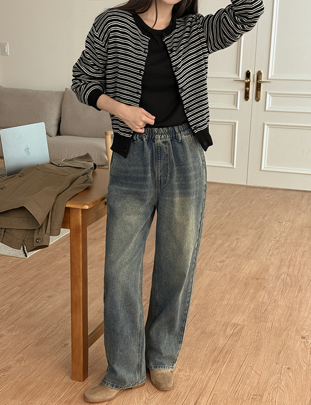 [特價 PROJECT][40까지]딱 내가 원한 세미와이드 전체밴딩 牛仔 褲 84144