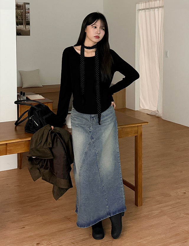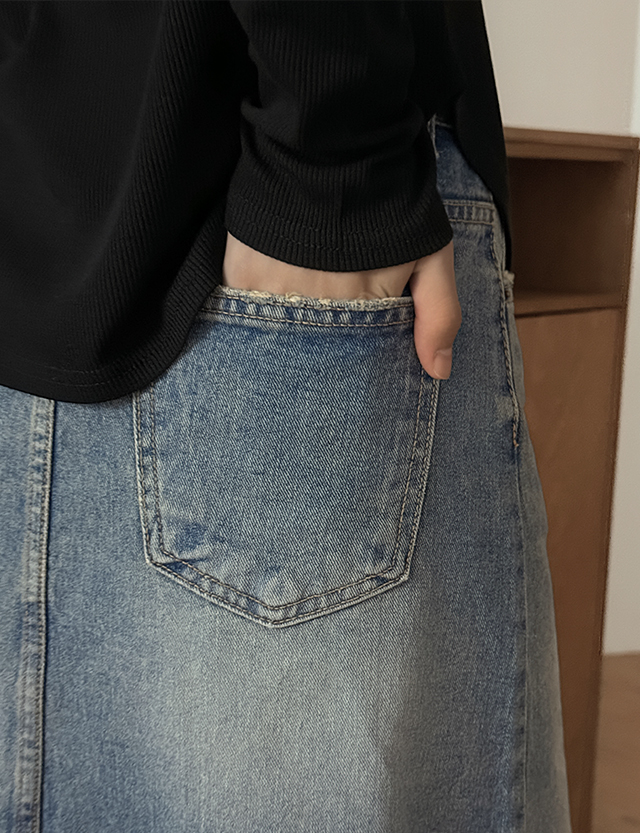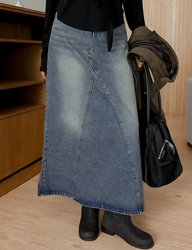 빈티지한 워싱감이 매력적인 데님 롱 스커트예요.