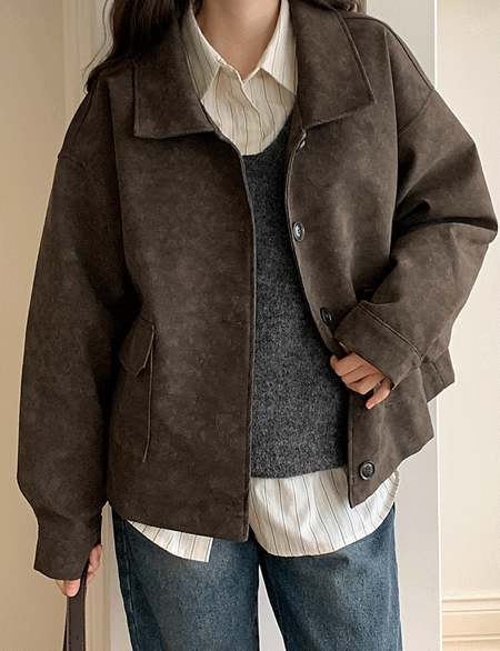로스트 寬鬆 크랙 領口 레더 外套 84203