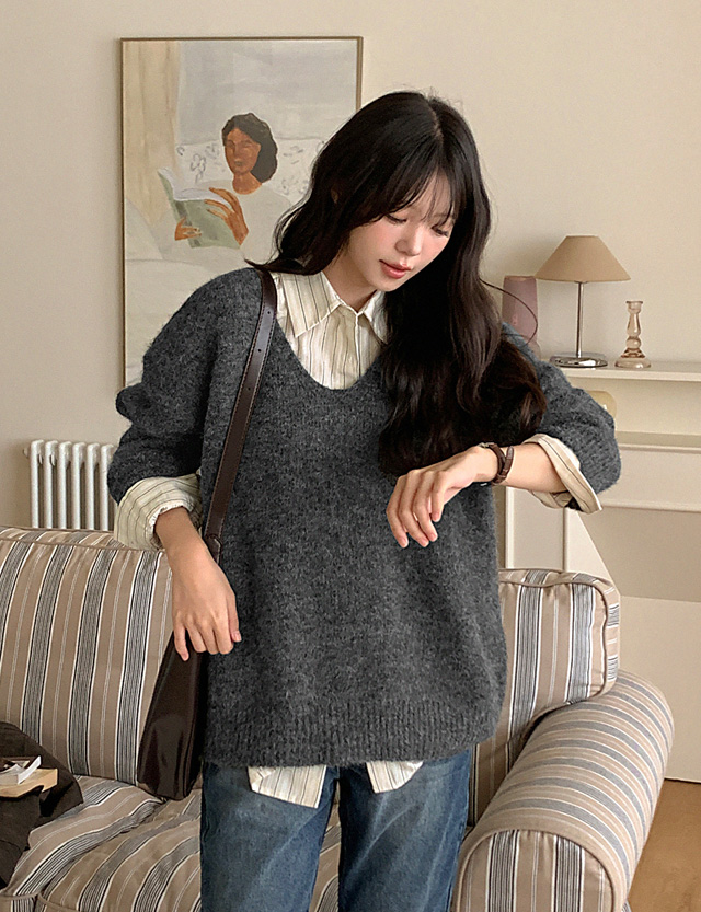 로스트 寬鬆 크랙 領口 레더 外套 84203