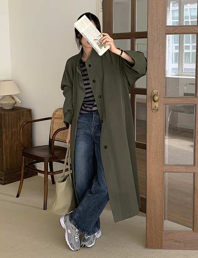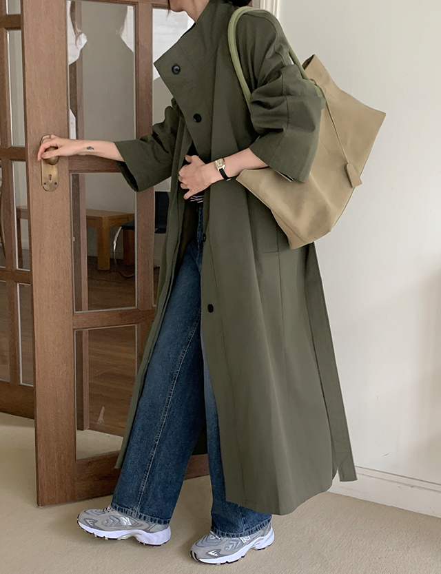 멋스러운 아웃핏을 선사하는 롱 트렌치코트입니다.