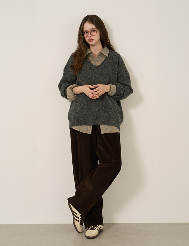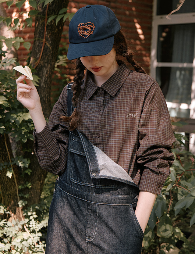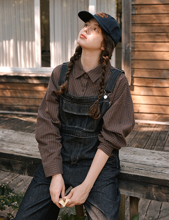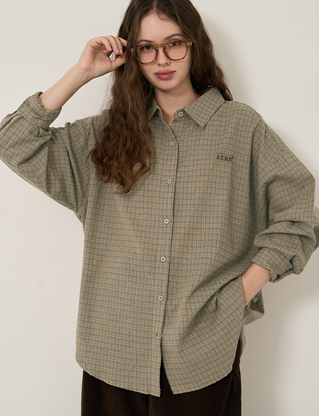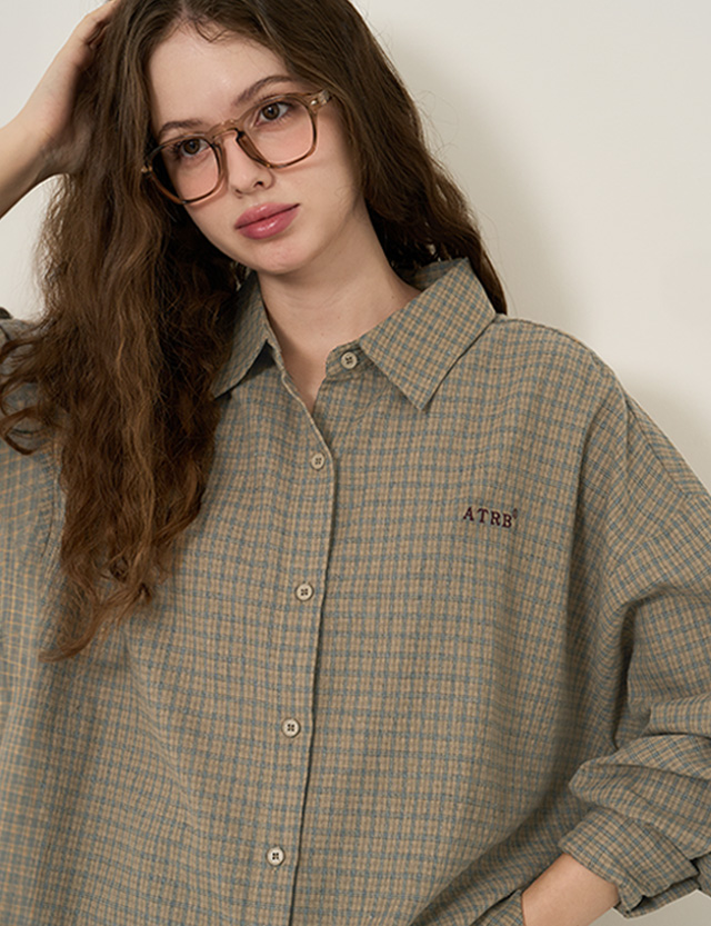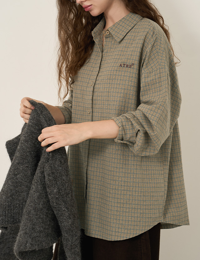 초코무스 寬鬆 格紋 刺繡 襯衫 83637