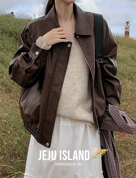 토니 寬鬆 레더 拉鏈外套 84170
