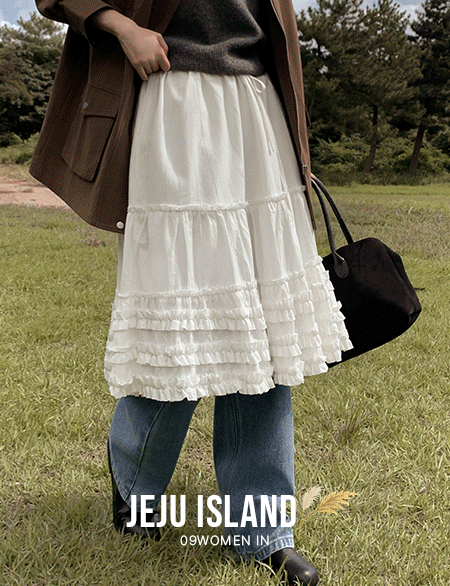尺碼 걱정없는 綁帶 荷葉裙 褶皺 長裙 84277