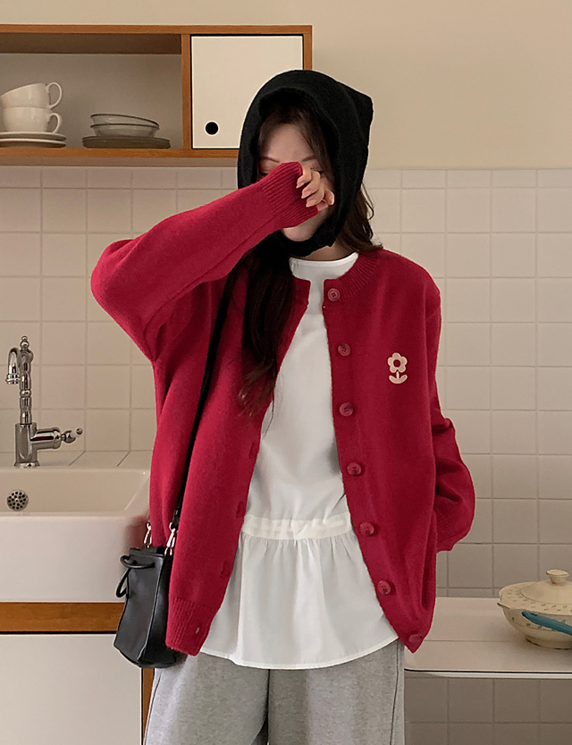 플로즌 碎花 圓領 針織 開襟外套 84219