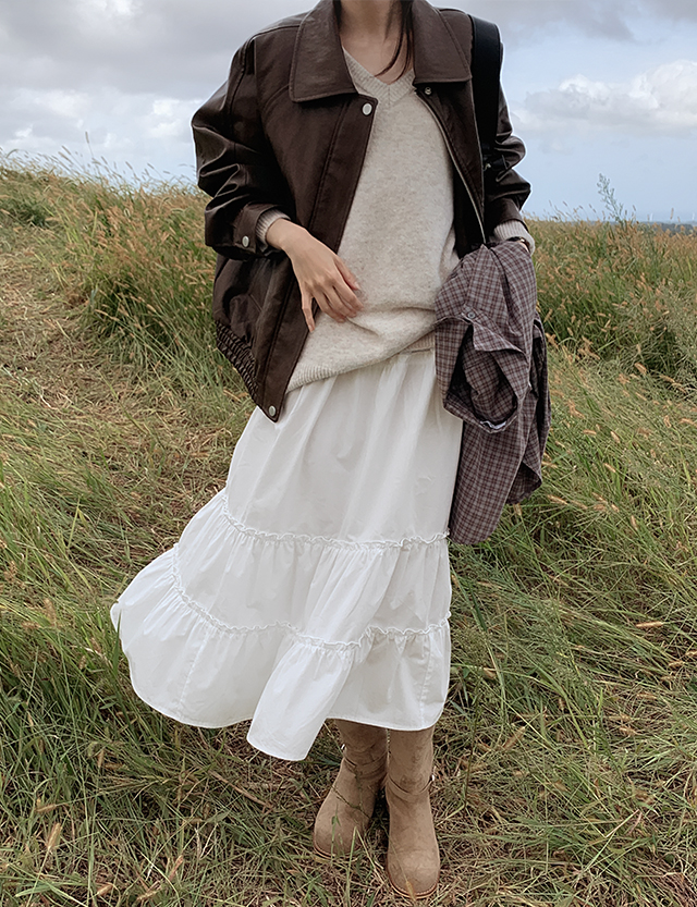 테리 鬆緊腰 層褶裙 格紋 長裙 83897