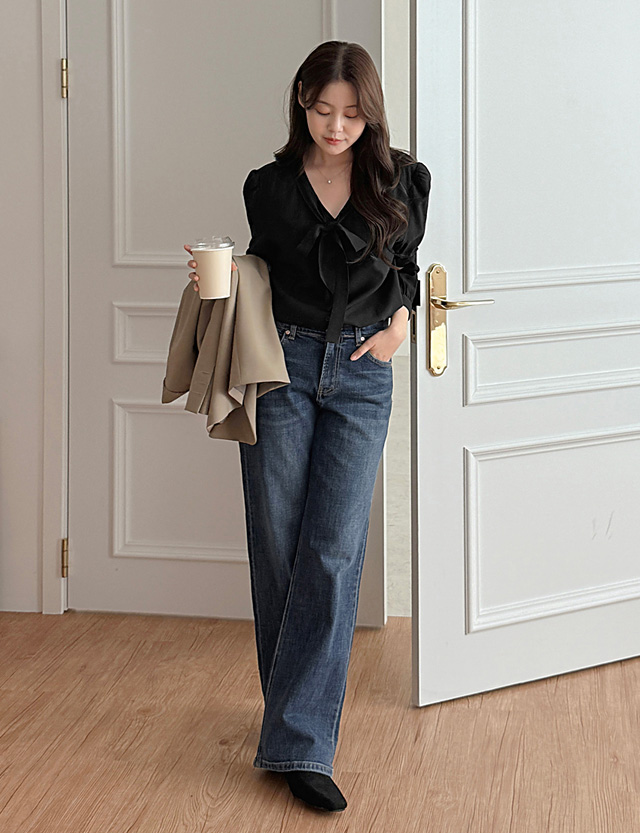 코틸루 속밴딩 세미 寬 牛仔 褲 84247