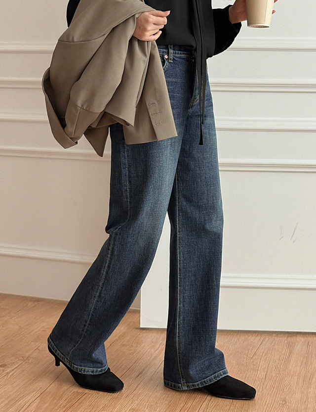 코틸루 속밴딩 세미 寬 牛仔 褲 84247