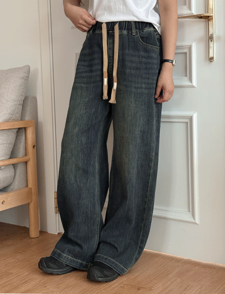 • 살라딘 鬆緊腰 寬 直筒 牛仔 褲 83672