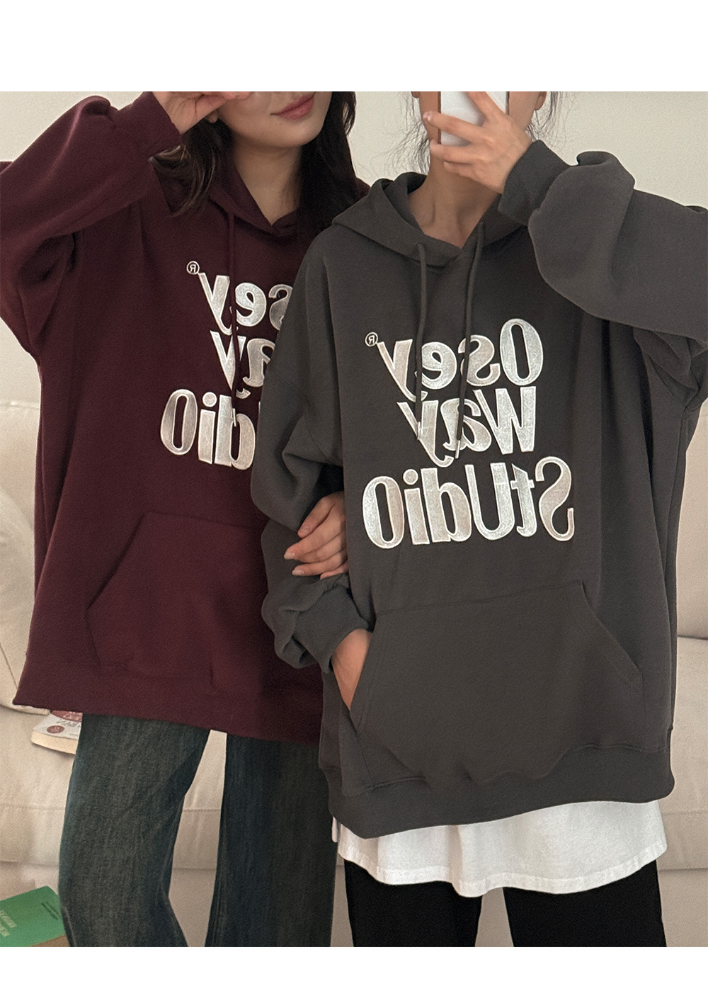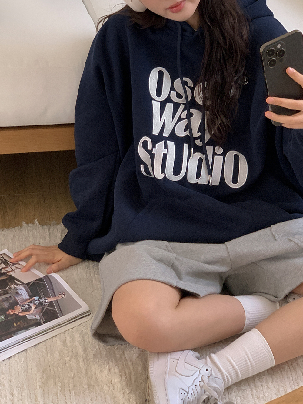 [09초이스] 오시 字母印花 刺繡 寬鬆 帶帽T卹 83553