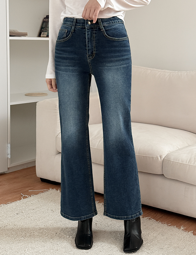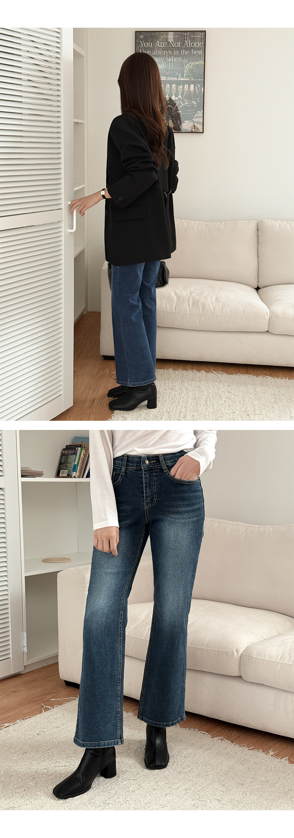 동시에 갖춘 부츠컷 데님 팬츠예요.
