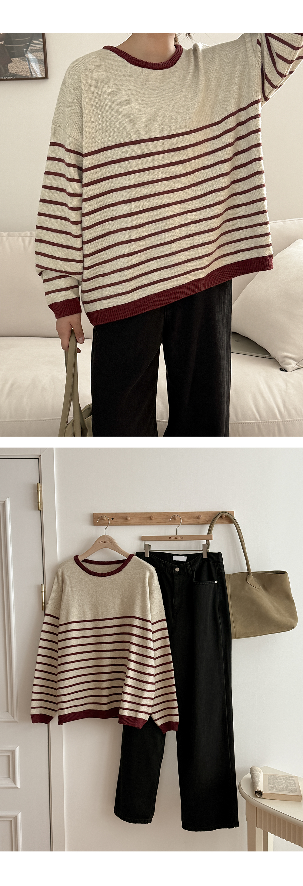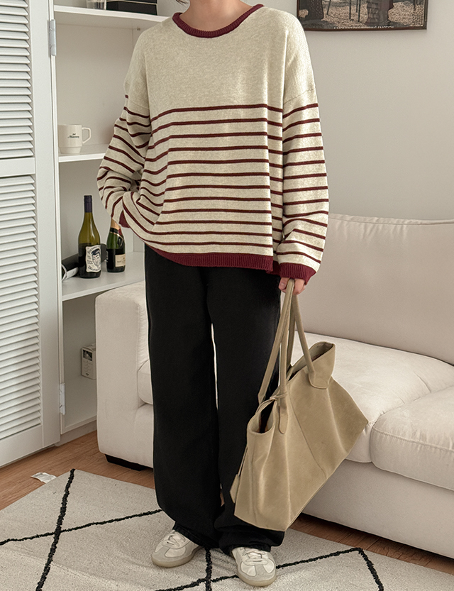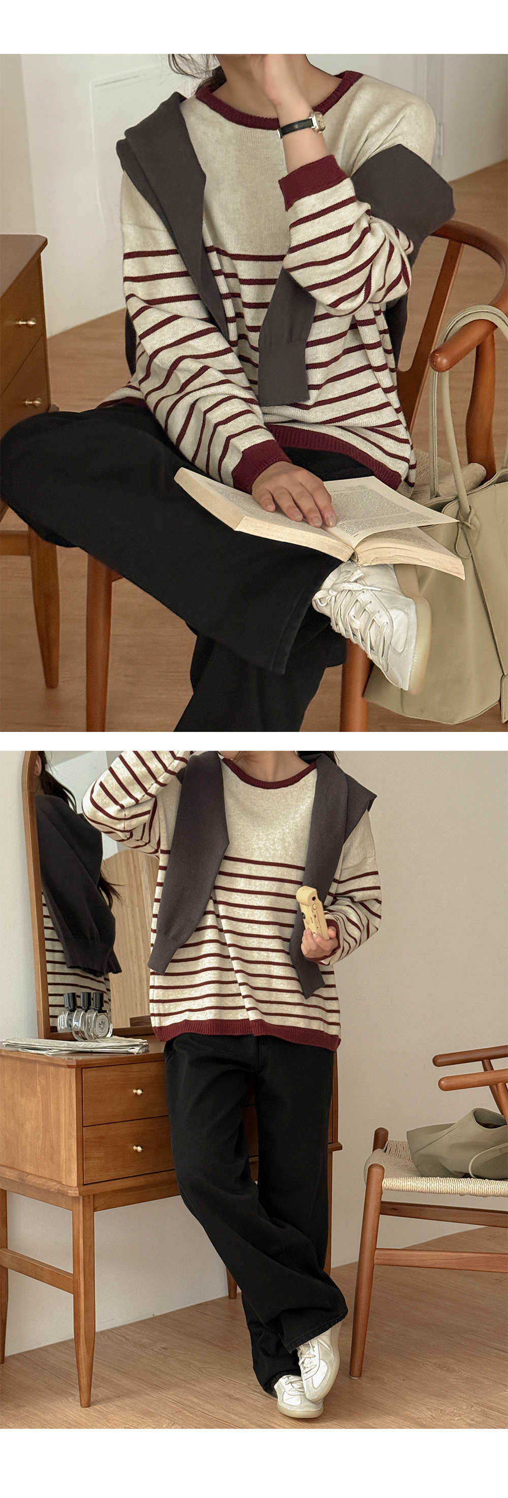 • [09초이스] 센트리 條紋 柔絲 루즈 針織 83558