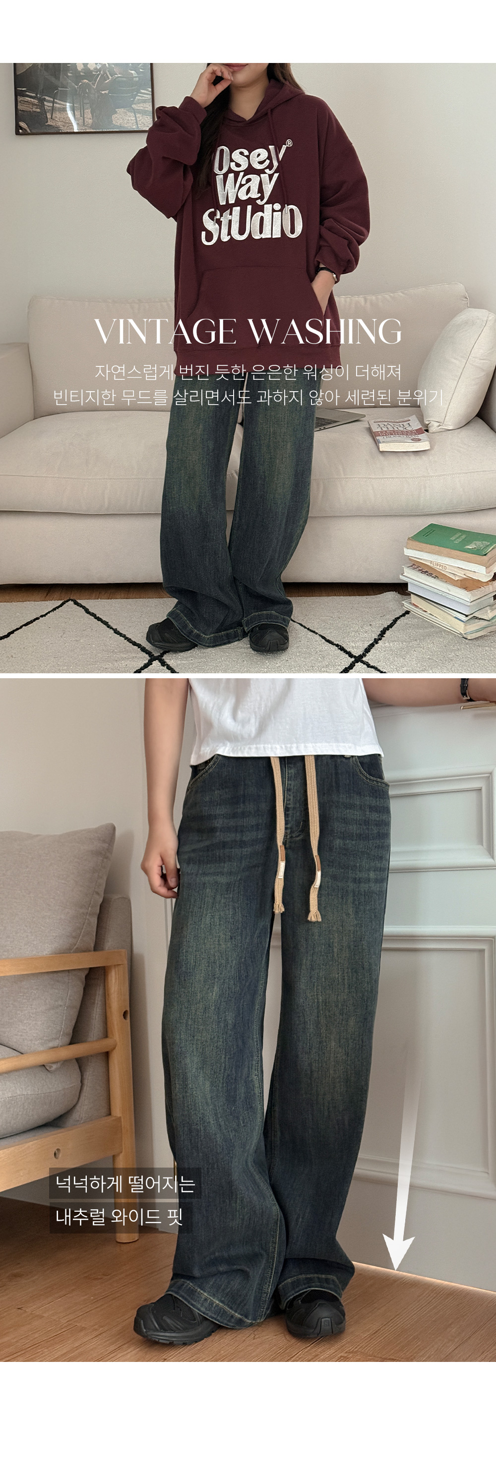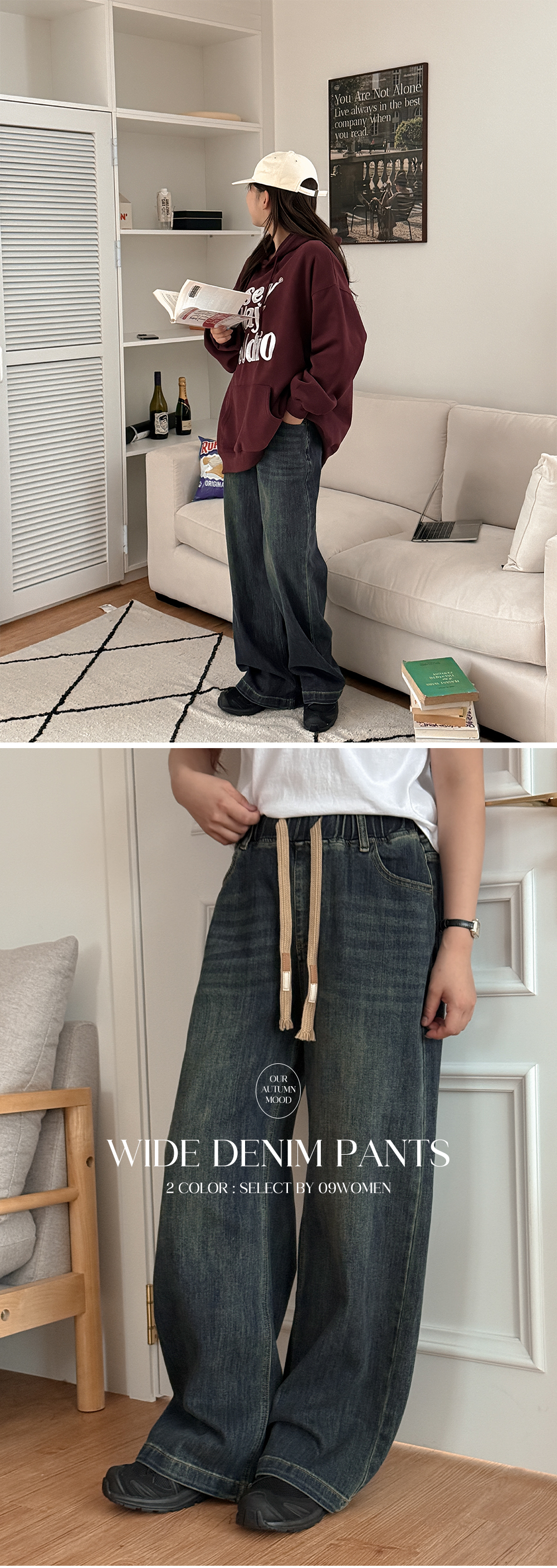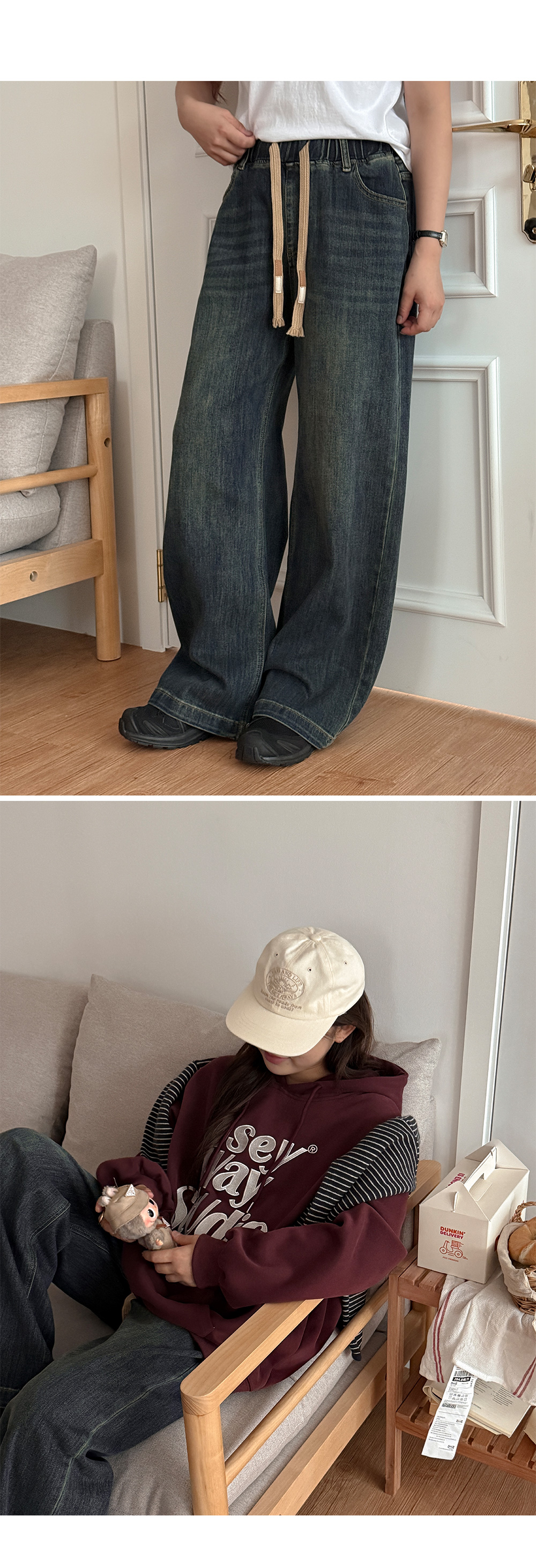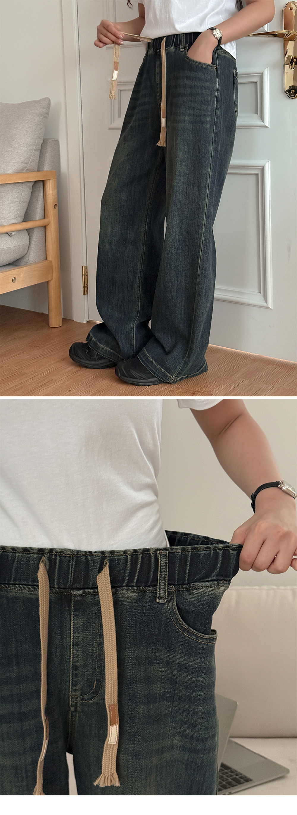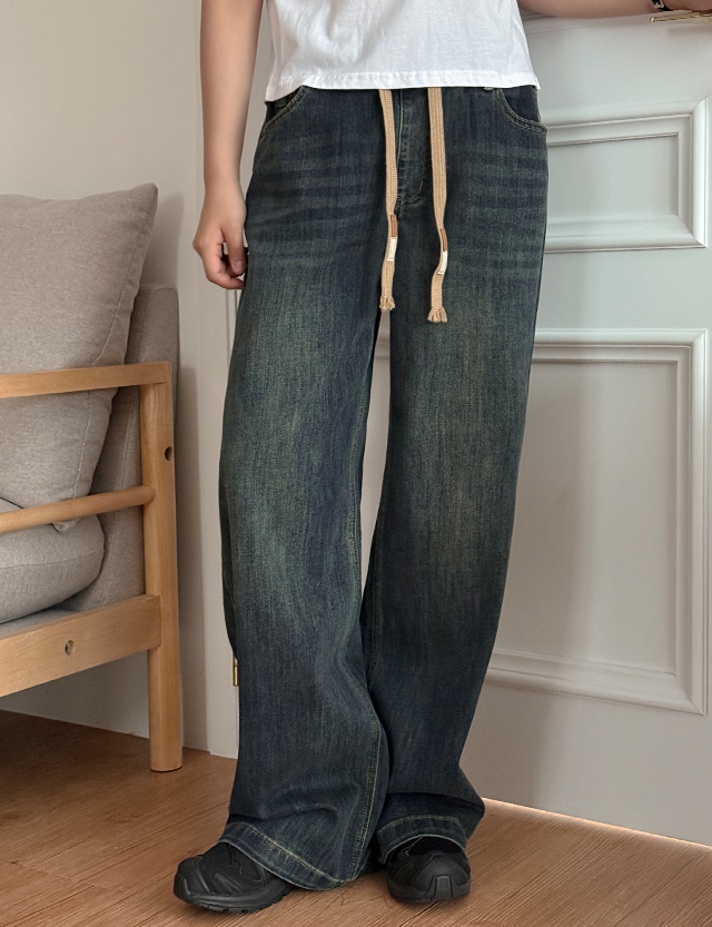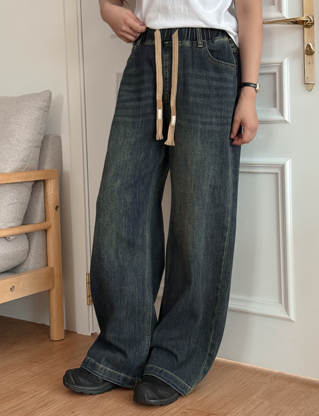 살라딘 鬆緊腰 寬 直筒 牛仔 褲 83672