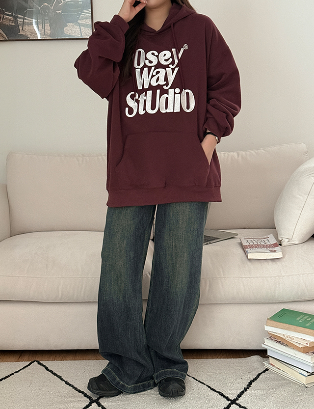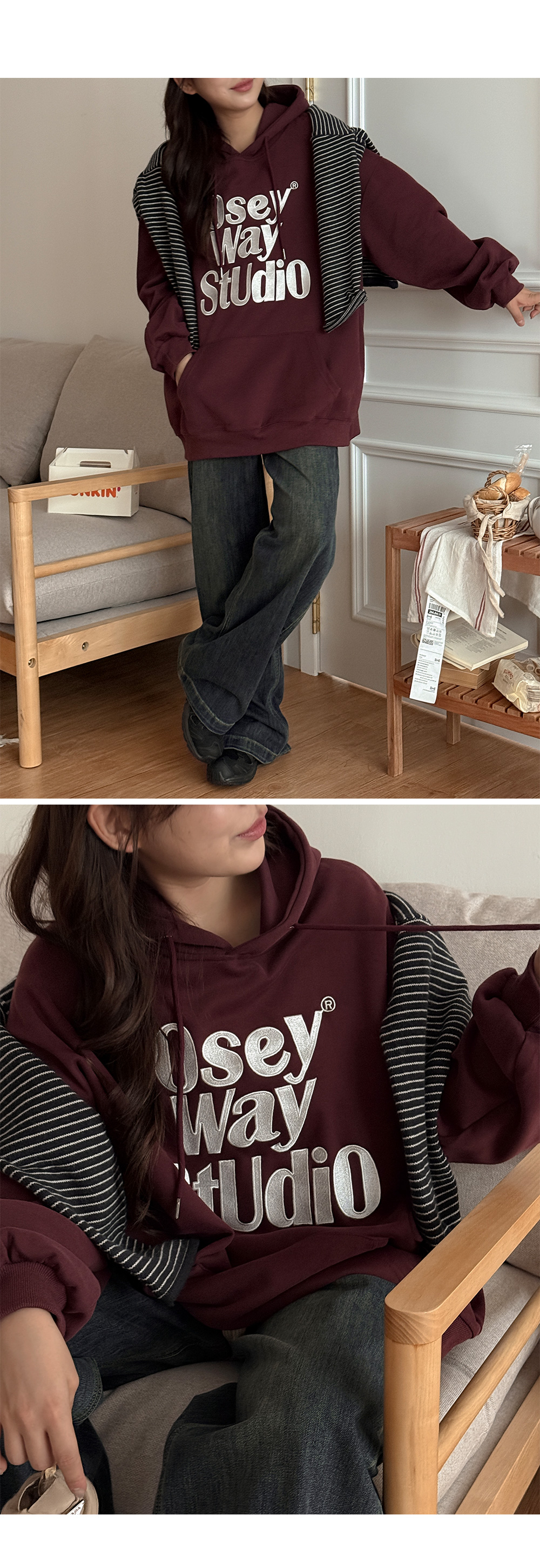 • [09초이스] 오시 字母印花 刺繡 寬鬆 帶帽T卹 83553