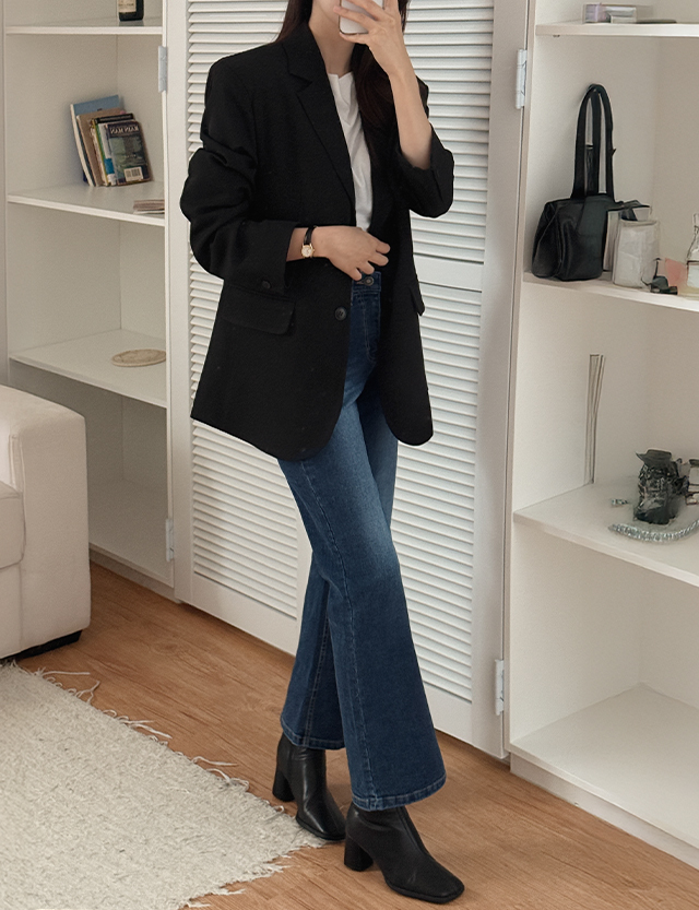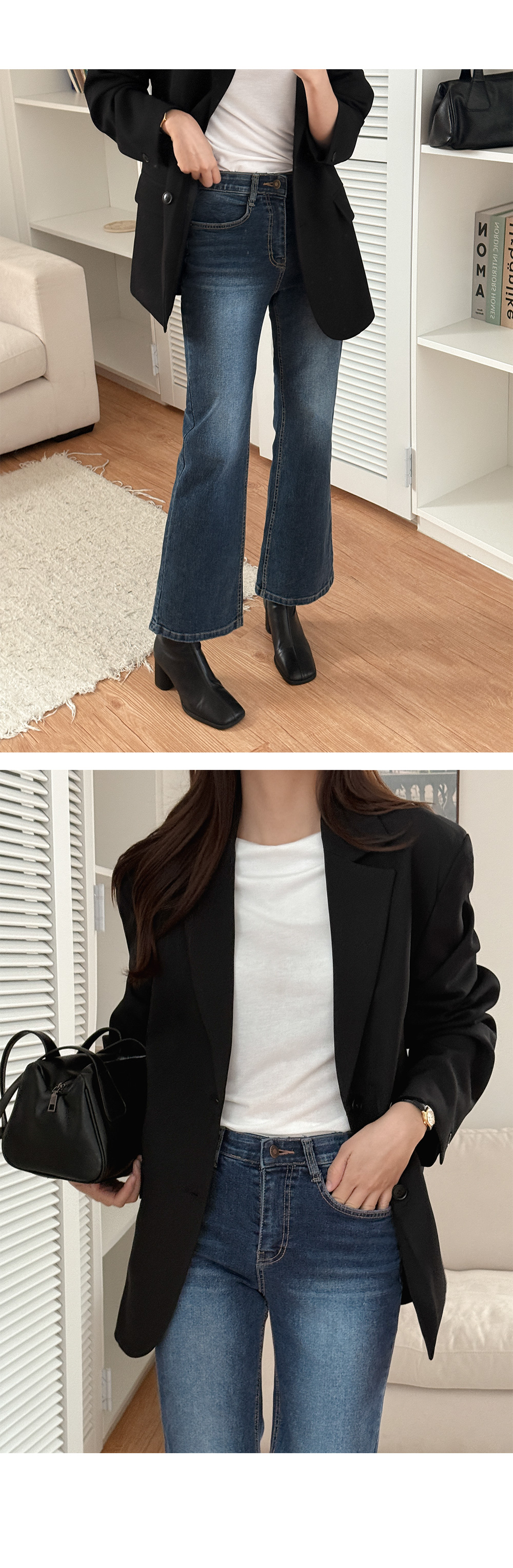 룩시 鬆緊腰 통 喇叭 牛仔 褲 84304