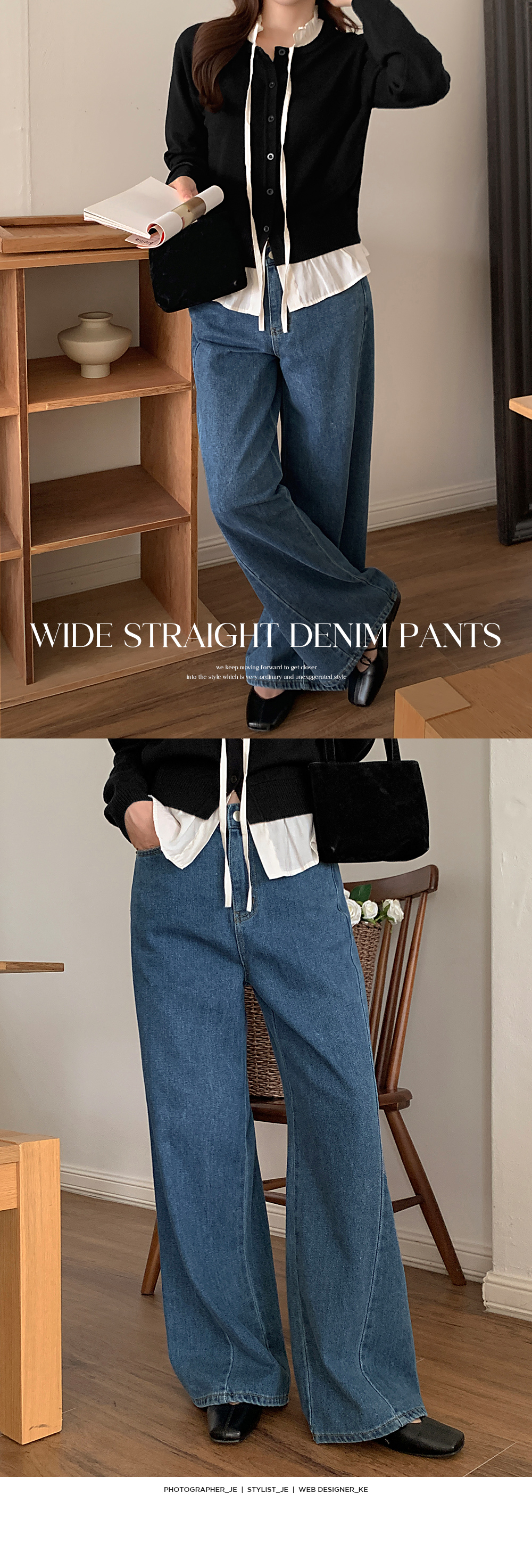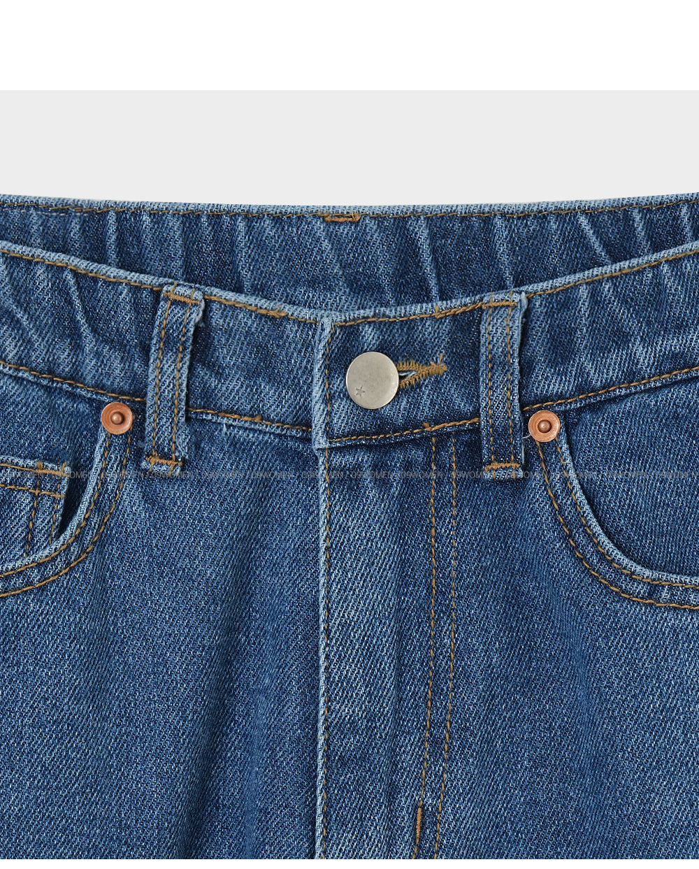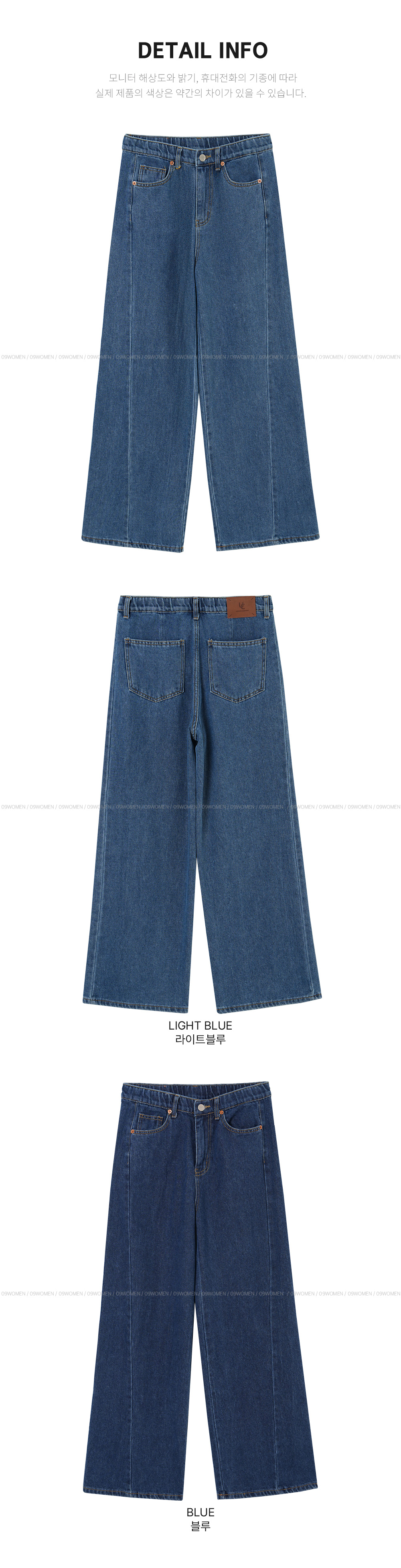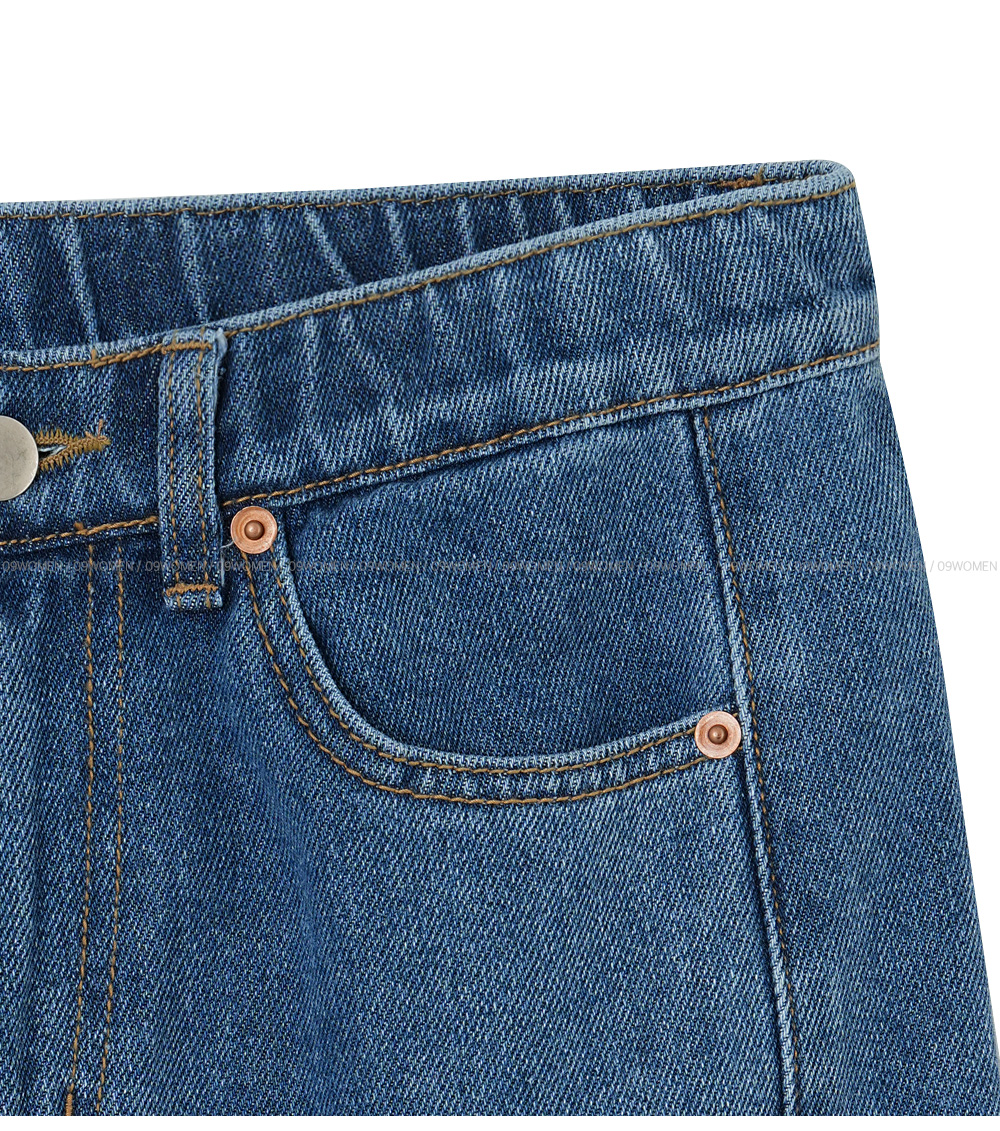 르버린 鬆緊腰 절개 寬 直筒 牛仔 褲 84291