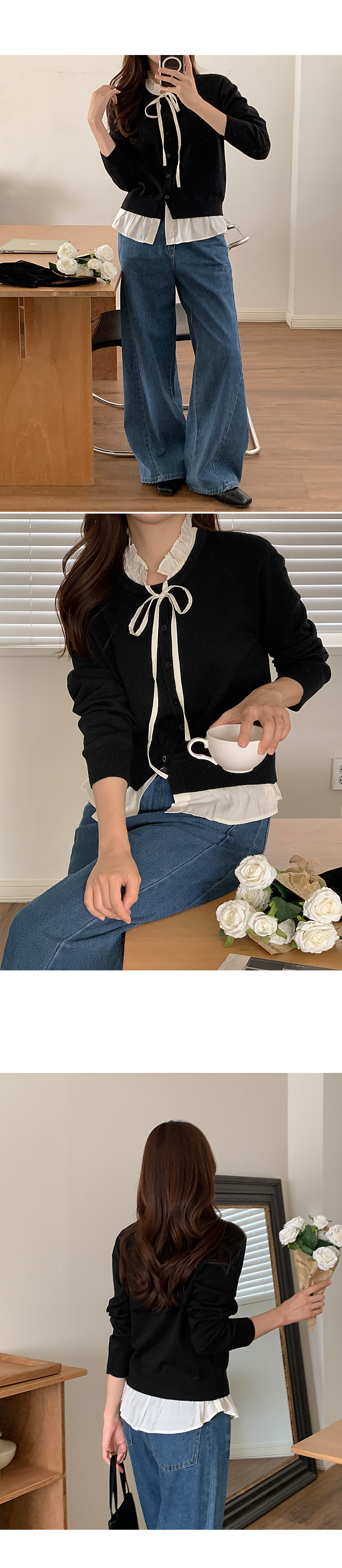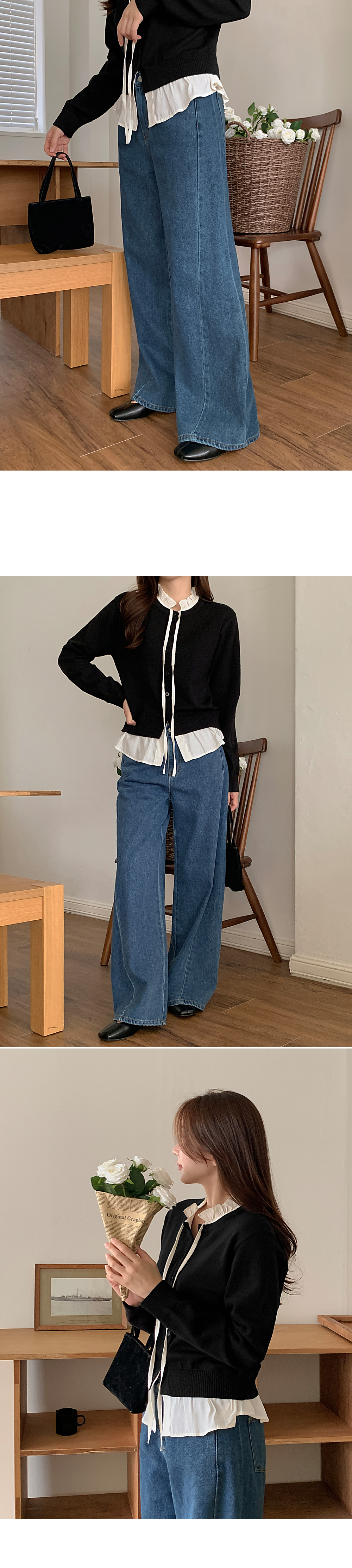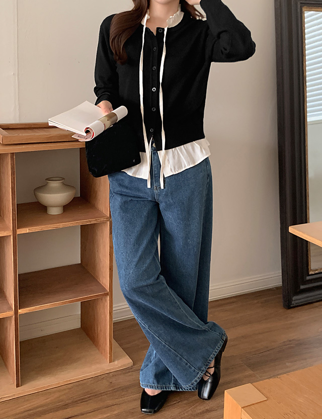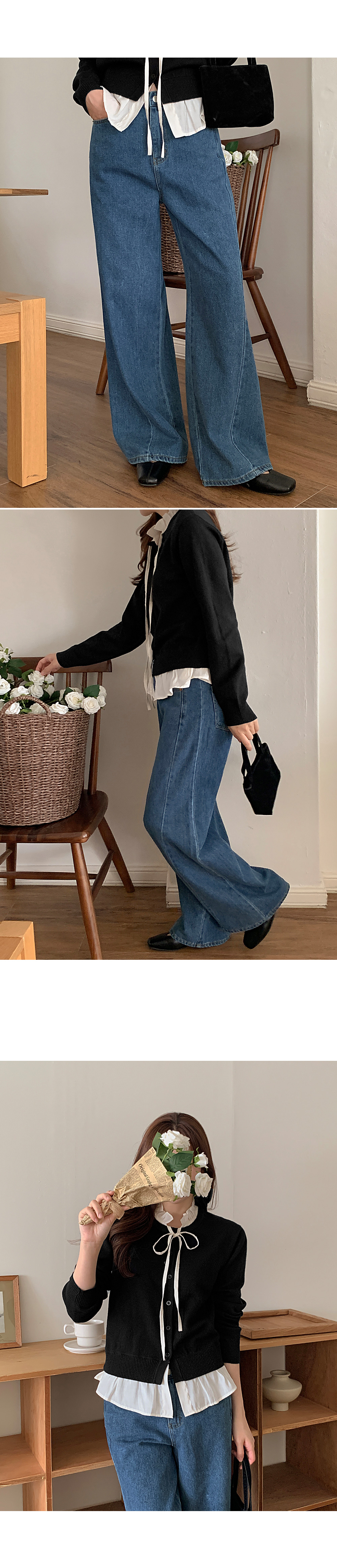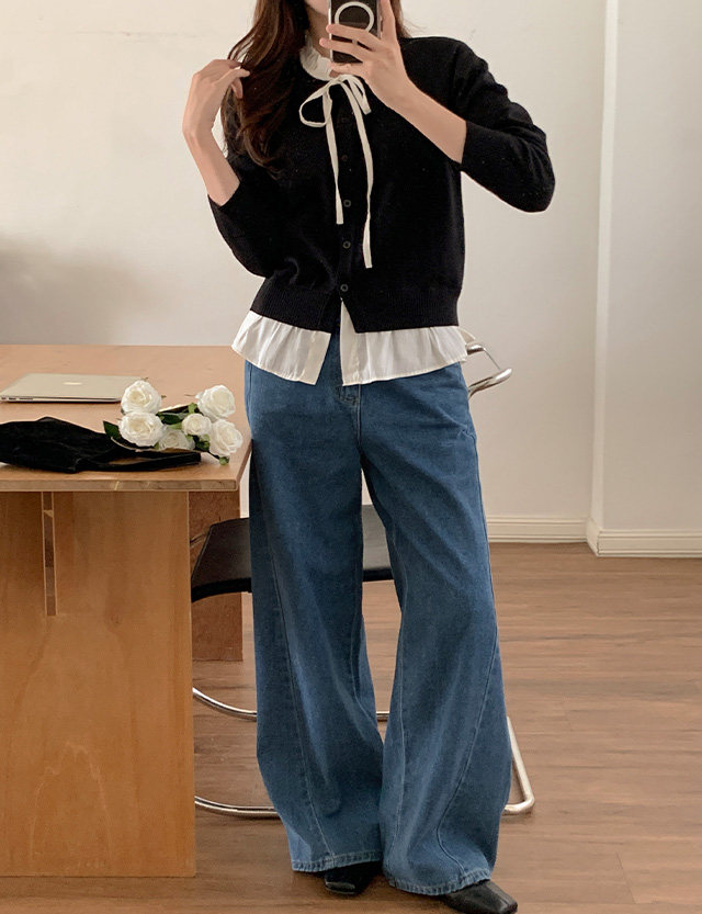 르버린 鬆緊腰 절개 寬 直筒 牛仔 褲 84291