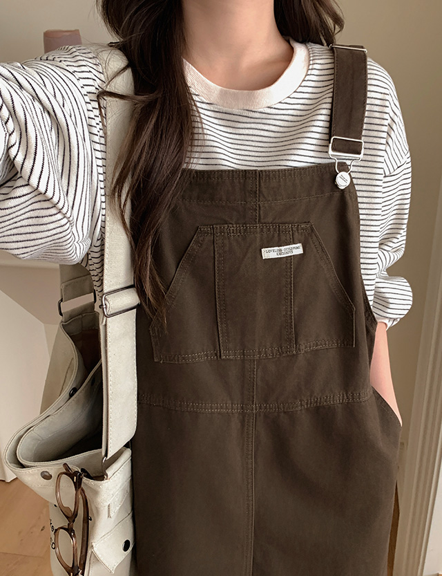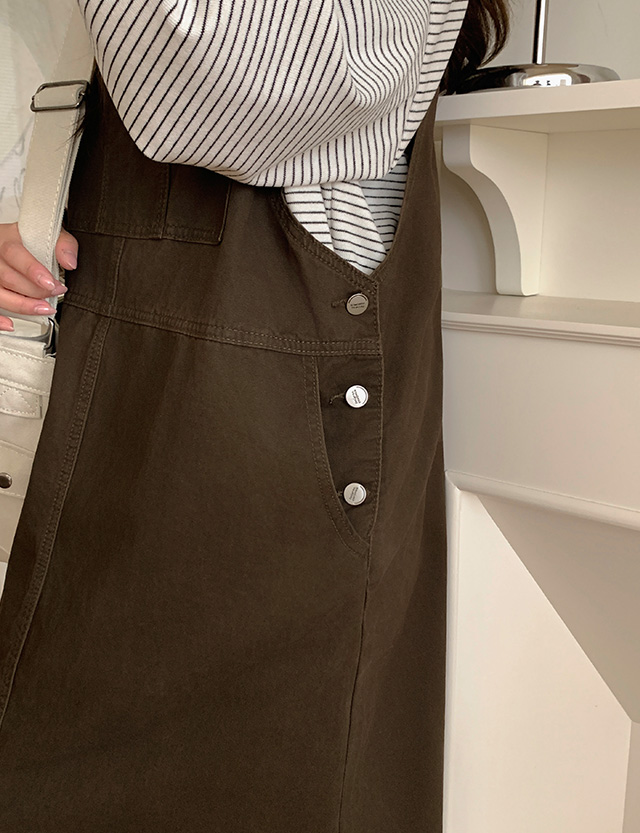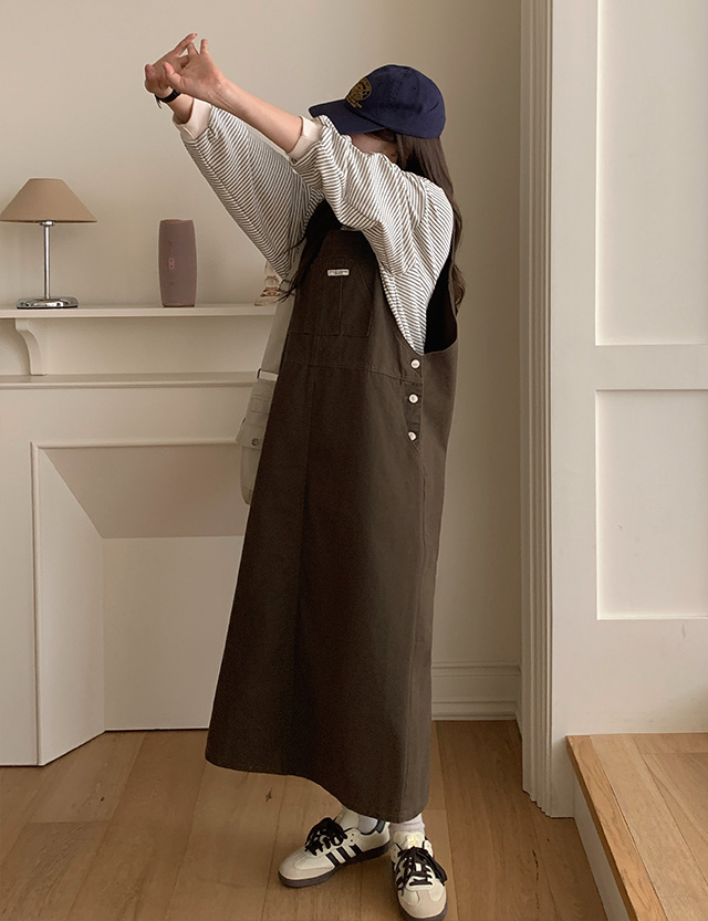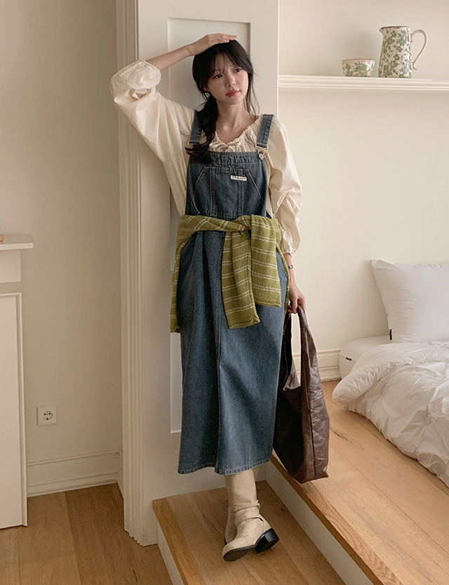취향따라 입기 좋은 코튼&데님 멜빵 롱 스커트