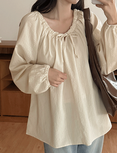 • 웨스티 寬鬆 刺繡 皺摺 襯衫 84205