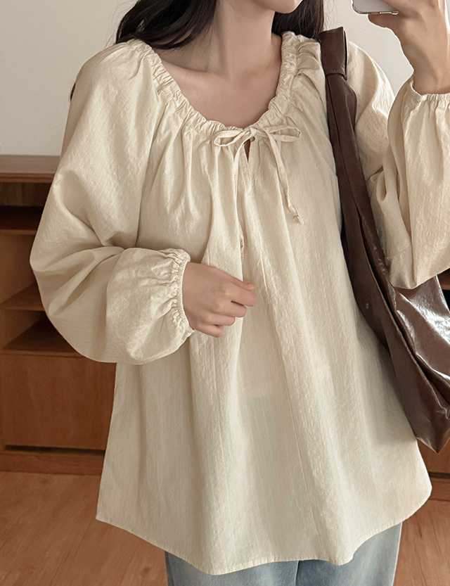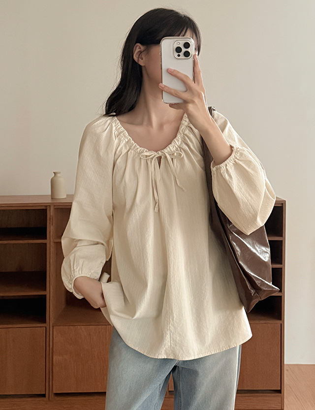 셔링 포인트로 자연스러운 볼륨감을 연출해 주었어요.