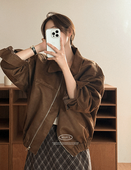• 볼튼리 鬆緊腰 領口 翻毛皮 拉鏈外套 84121