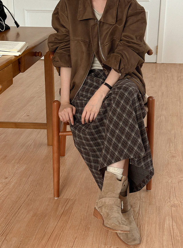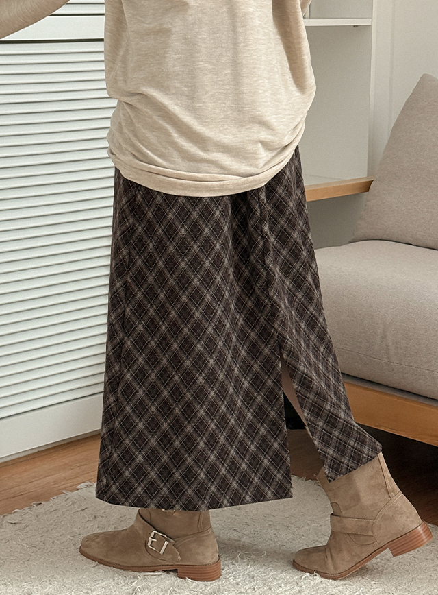 [09초이스] 코지무드 가득 格紋 鬆緊腰 長裙 84123