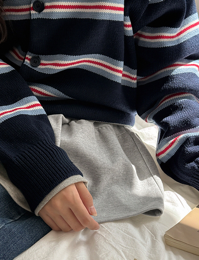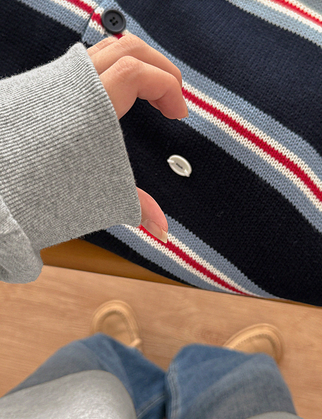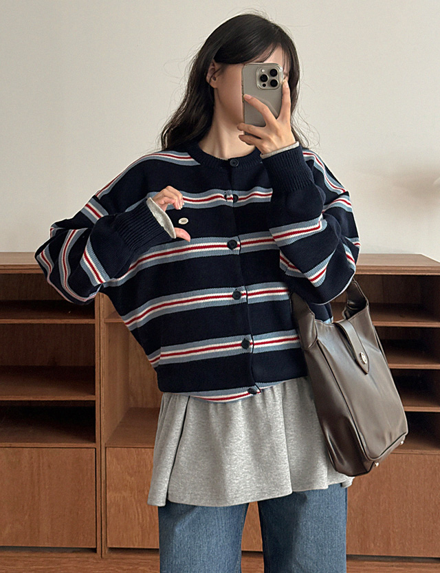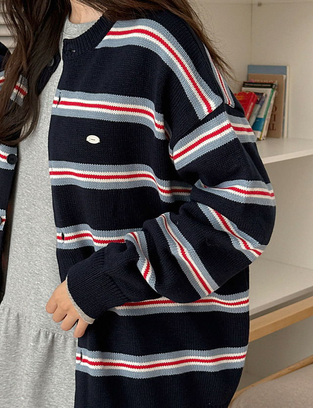 [남녀공용] 시밀러 寬鬆 條紋 針織 開襟外套 84050