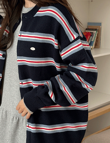 [남녀공용] 시밀러 寬鬆 條紋 針織 開襟外套 84050