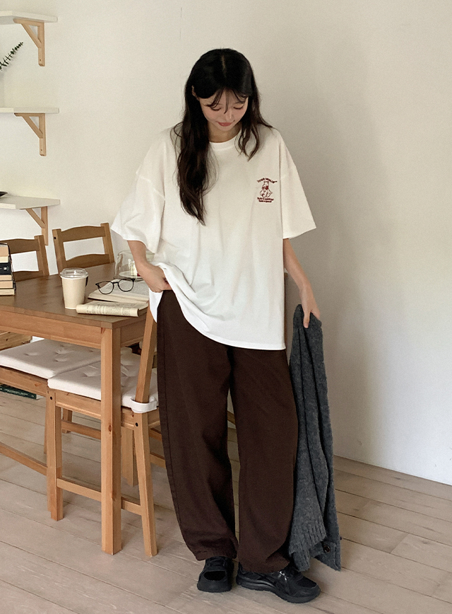 [09초이스] 댕스타그램 寬鬆 刺繡 短袖 T恤 84329