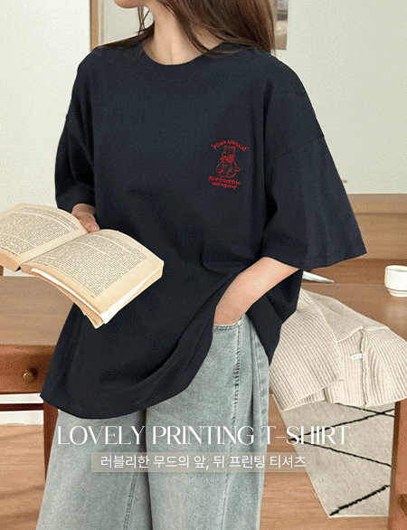 • [09초이스] 댕스타그램 寬鬆 刺繡 短袖 T恤 84329