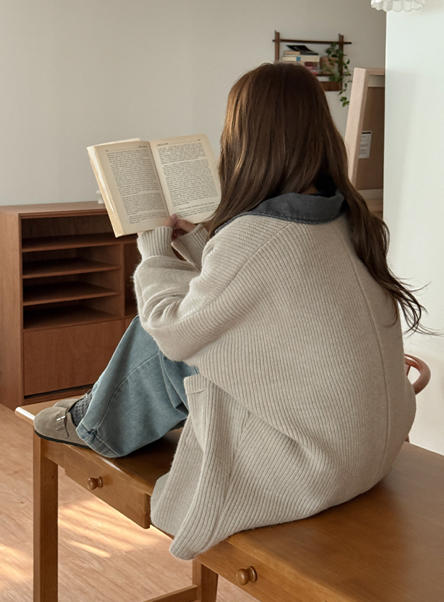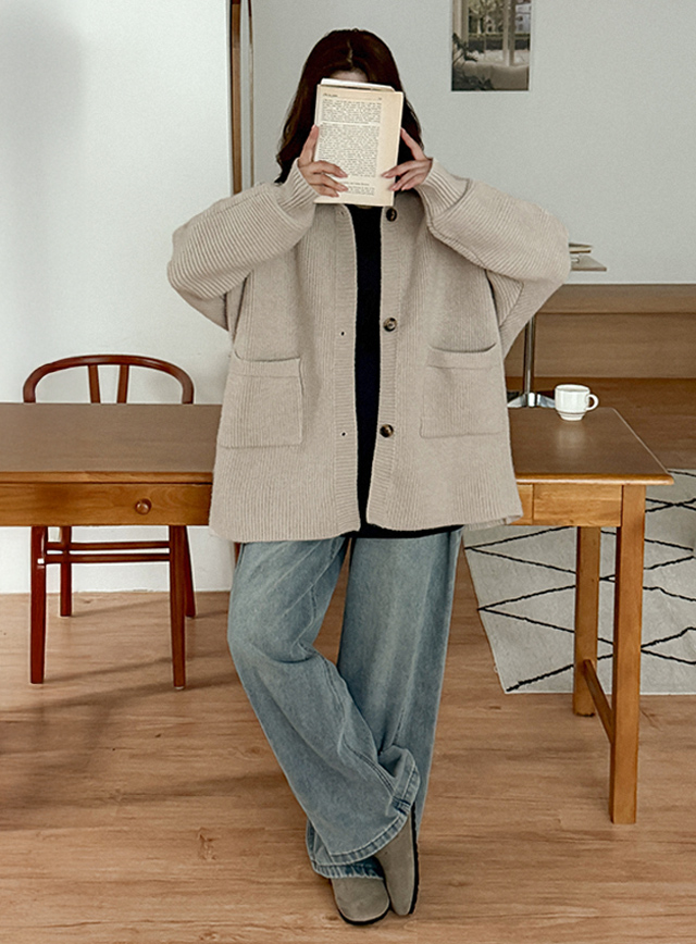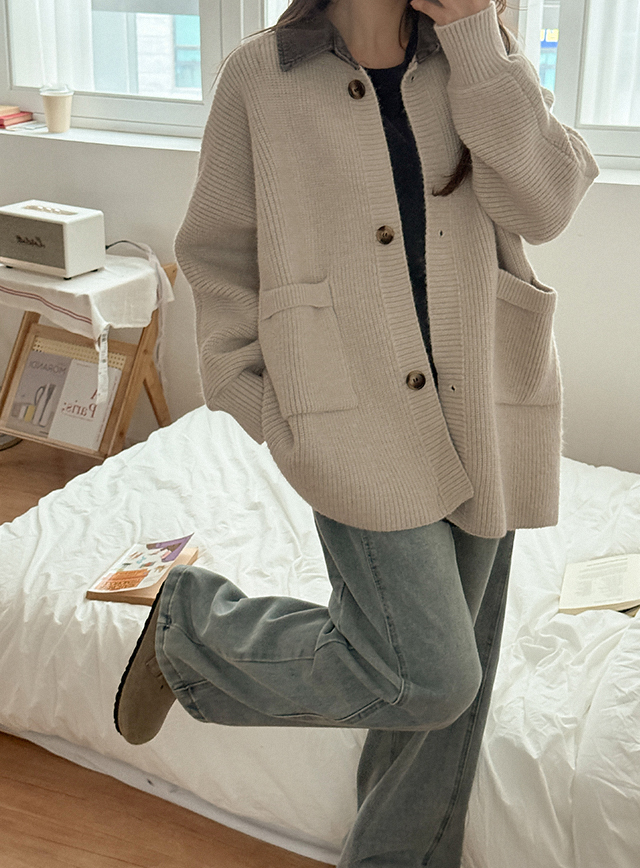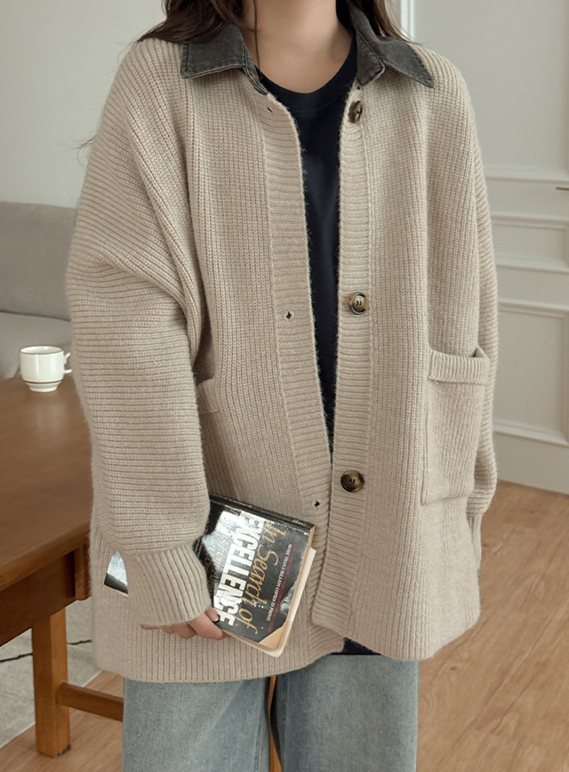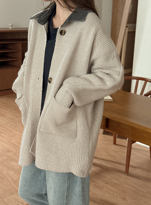 마이텔 寬鬆 牛仔 領口 針織 開襟外套 84445