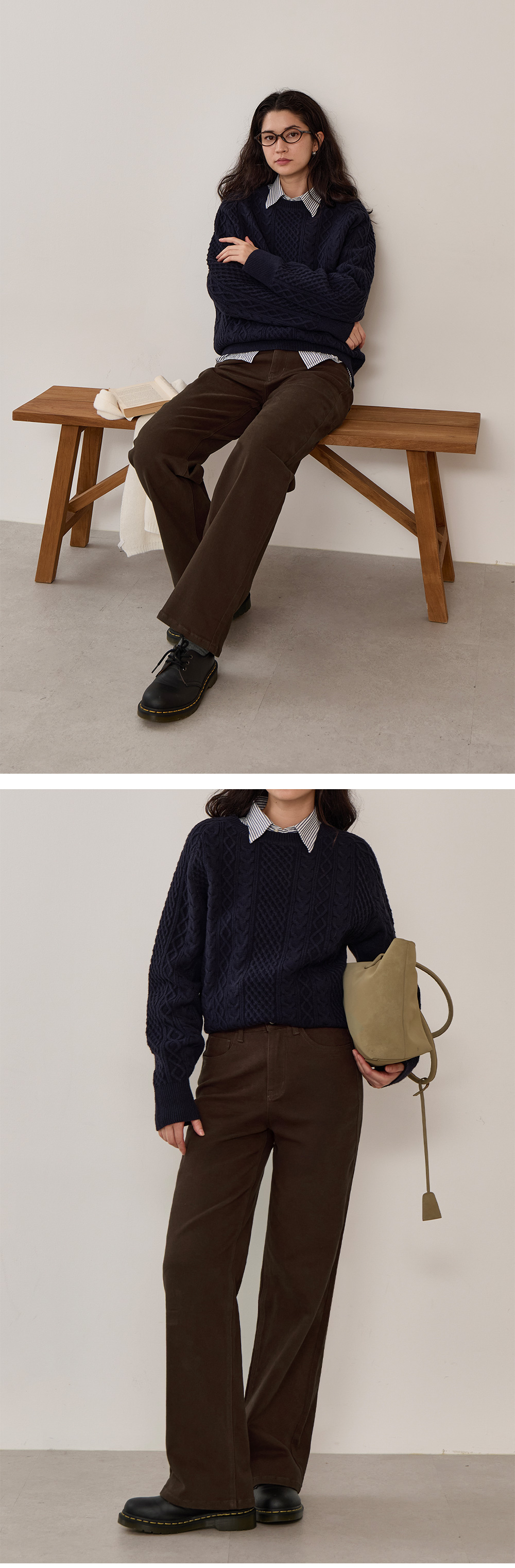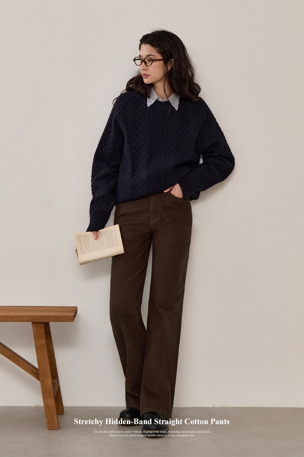스판굿 鬆緊腰 스트레이트 棉質 褲 84390