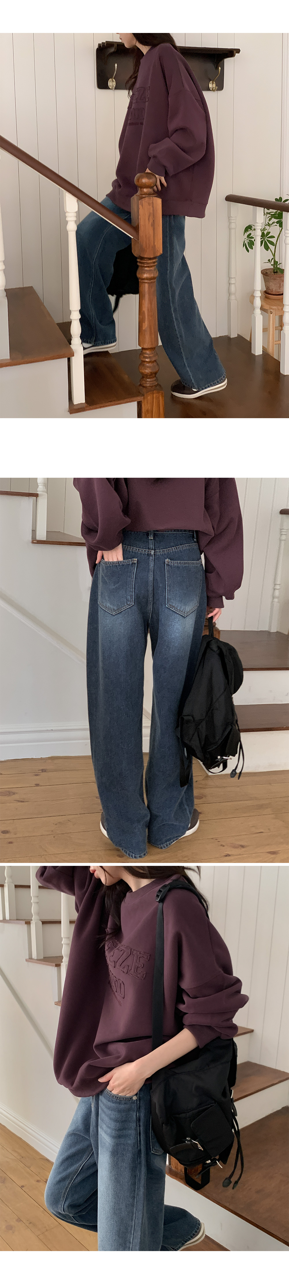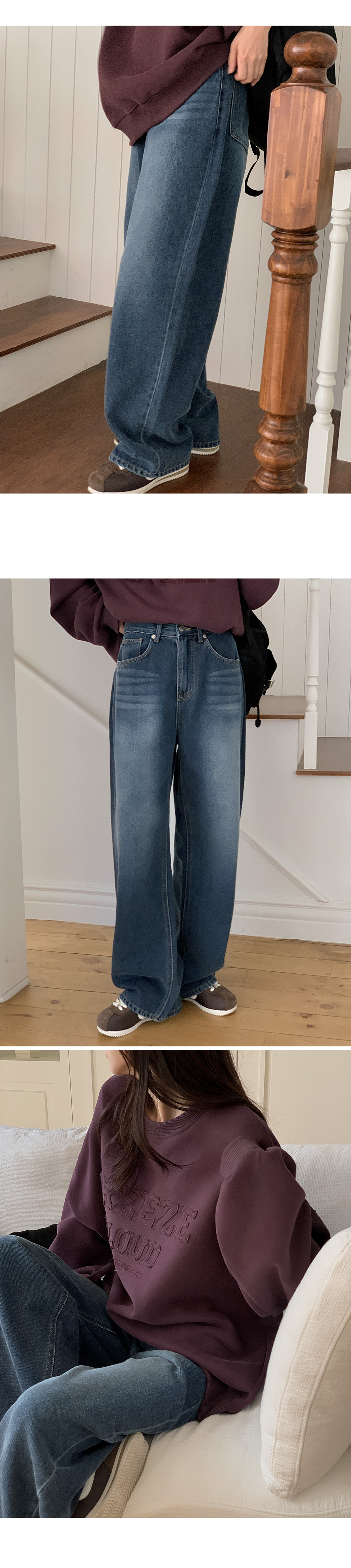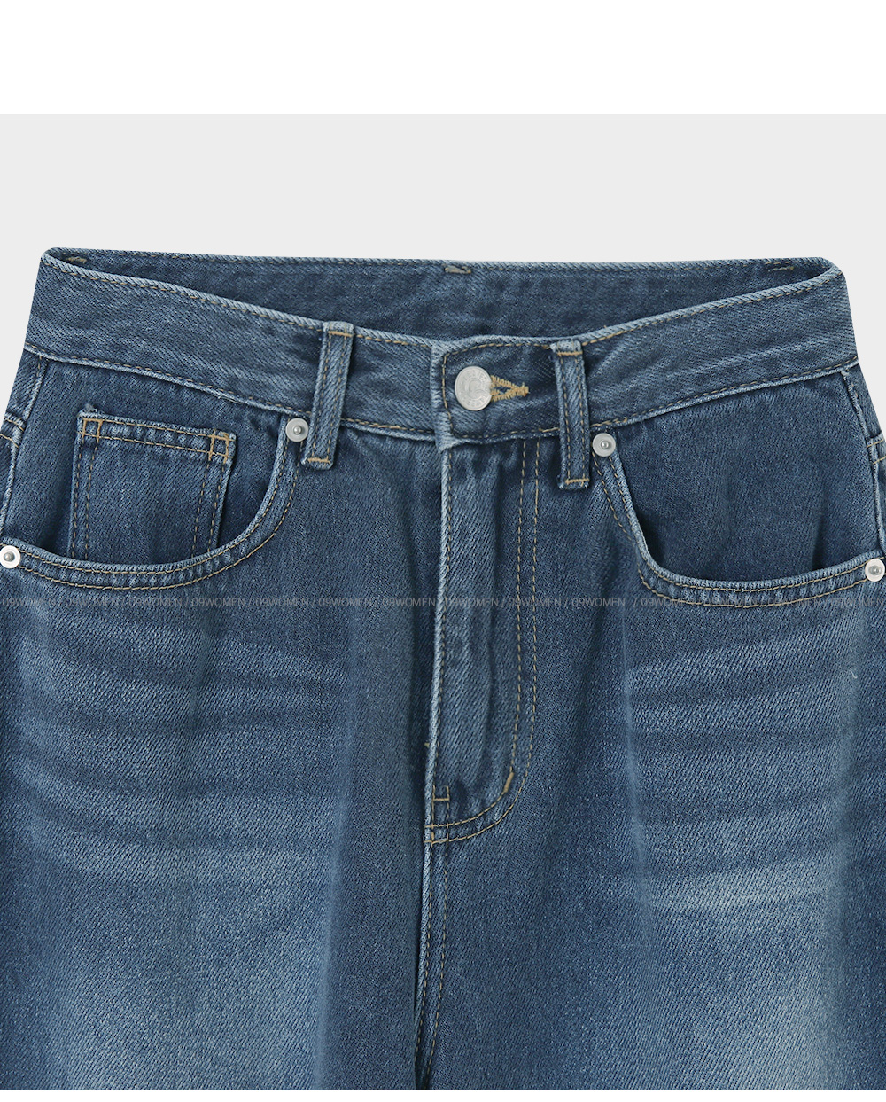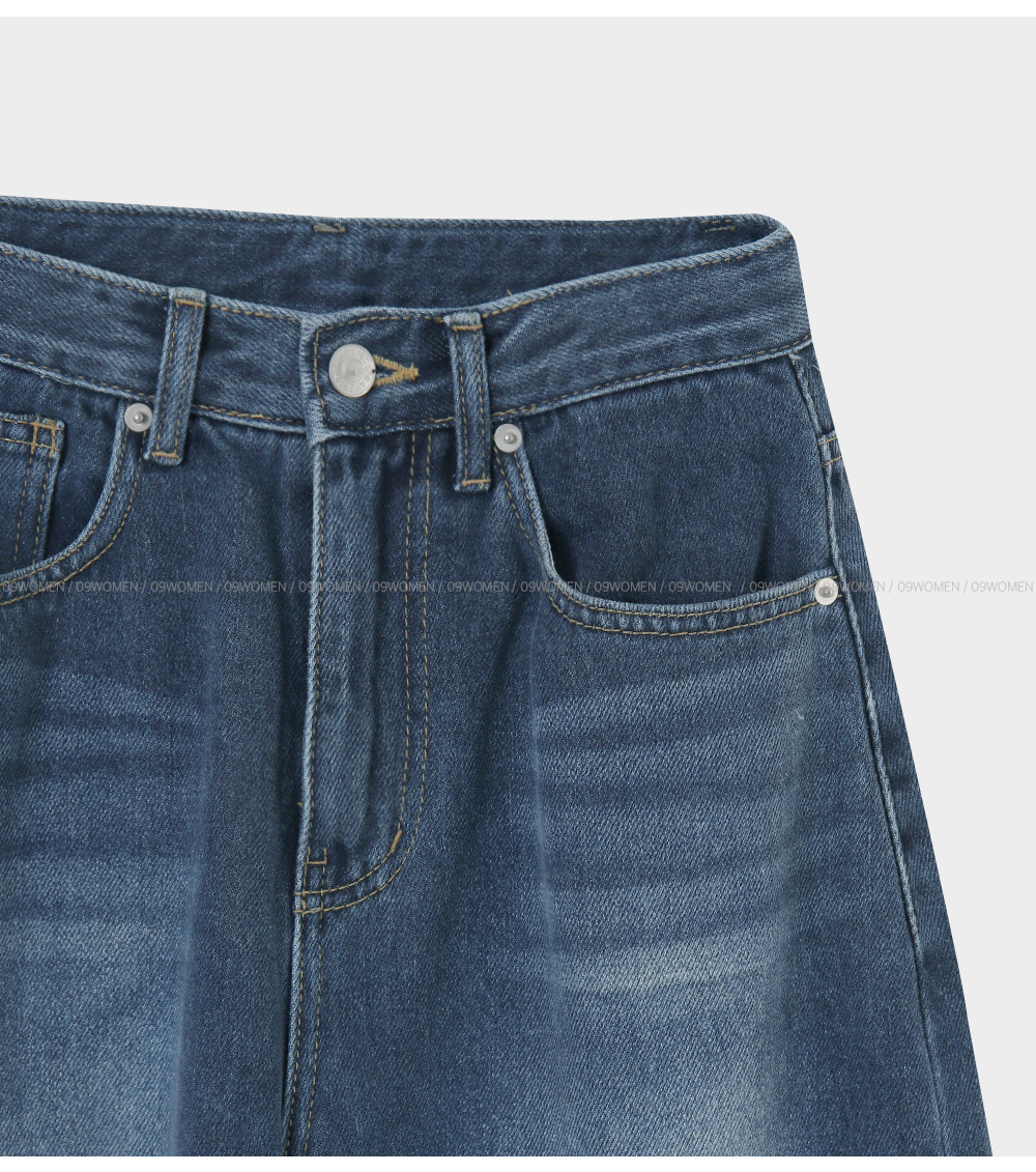 자연스러운 워싱으로 트렌디한 무드를 살린 와이드 데님 팬츠