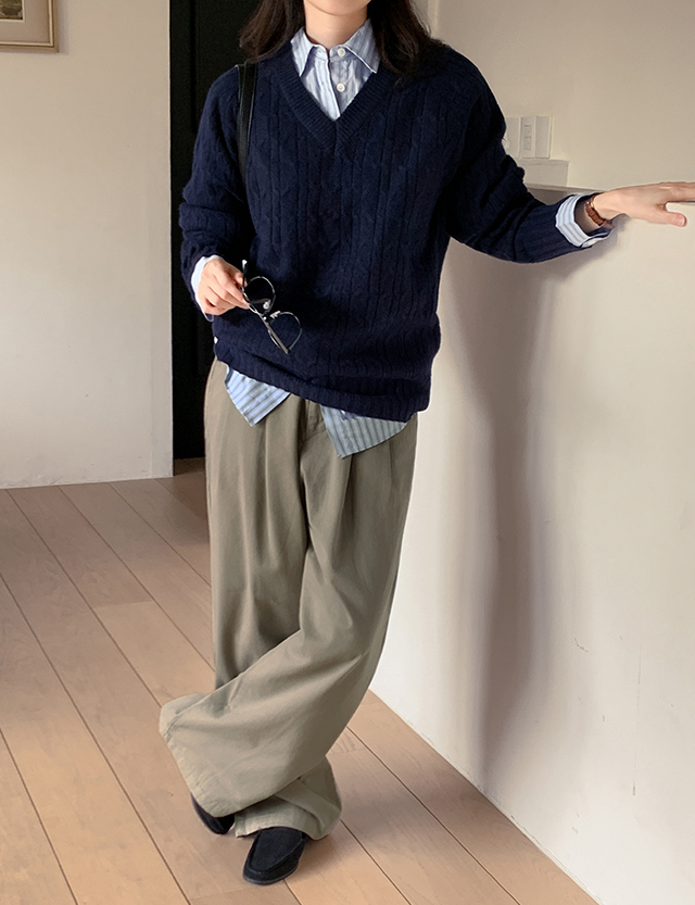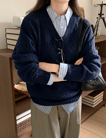 • 베비스 基本款 V領 麻花型 針織 84361